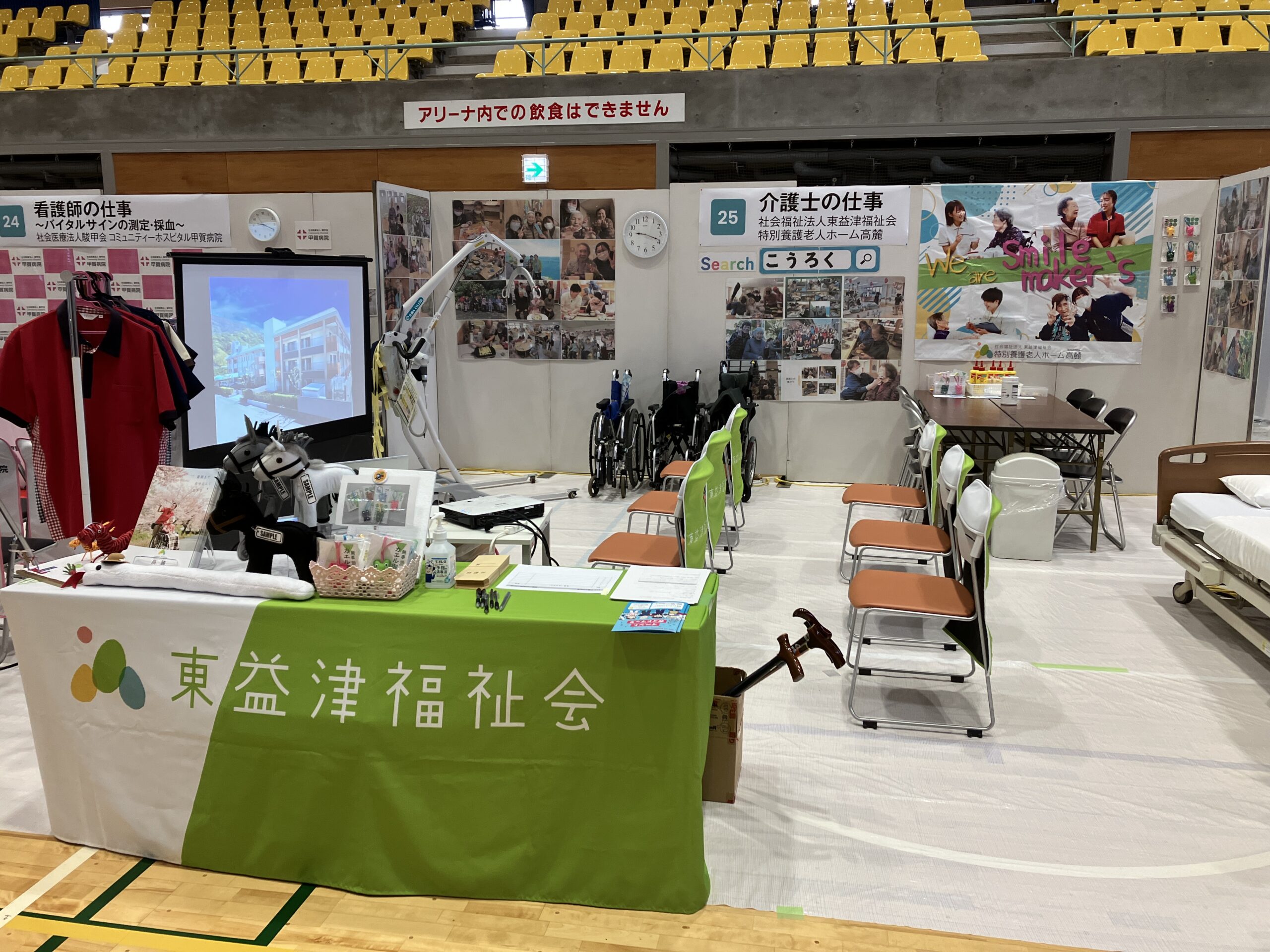 中部地方初となるOut of Kidzaniaが焼津のシーガルドームで行われ、高麓も介護士の体験ブースを設置し、多くの方へ参加いただきました。