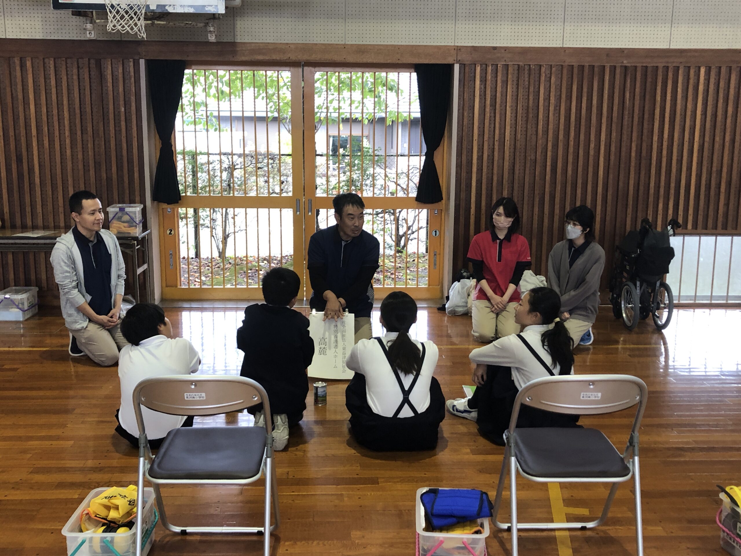 Your Life様主催の【小学校6年生体験授業】にて葉梨小学校を訪ね、葉梨西小学校との合同授業にて介護の仕事の魅力を伝えました。