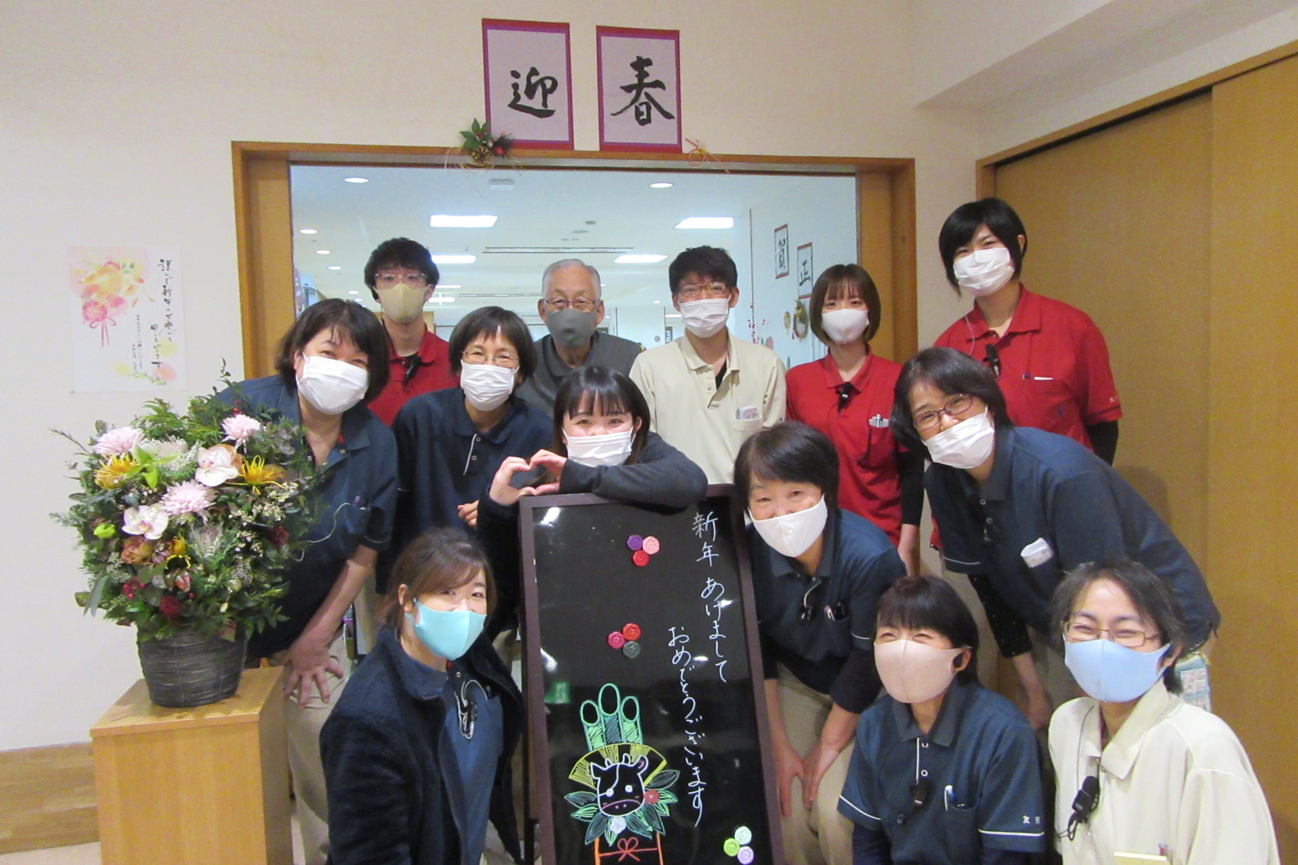 新年準備は整いました。マスクの下は皆笑顔です。今年もお世話になりました。来年も皆さまのお越しをお待ちしております。