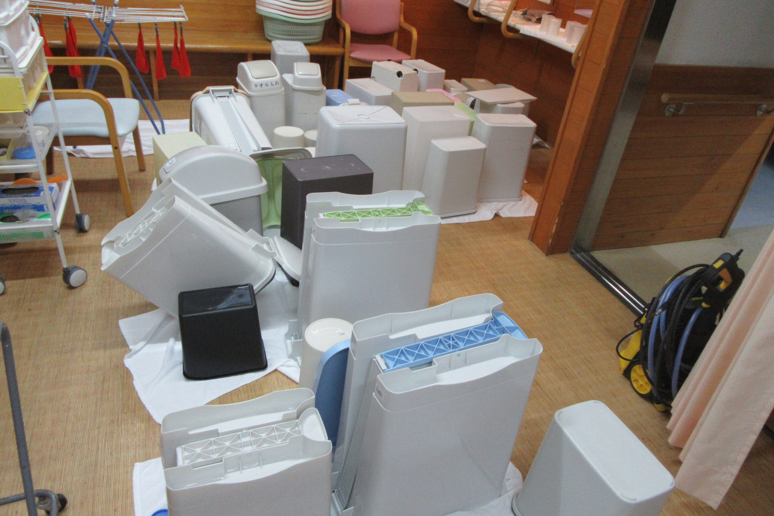 今年はコロナ禍で、いすやテーブル、取っ手など手が触れるところを毎日消毒し、皆さんが安心してご利用頂けるよう努めてまいりました。そして12月は1ヵ月かけて少しずつ大掃除を行ってきましたが本日は若手男性職員2人がデイサービス中のゴミ箱を洗い、お風呂をピカピカにし最後の仕上げをしてくれました。