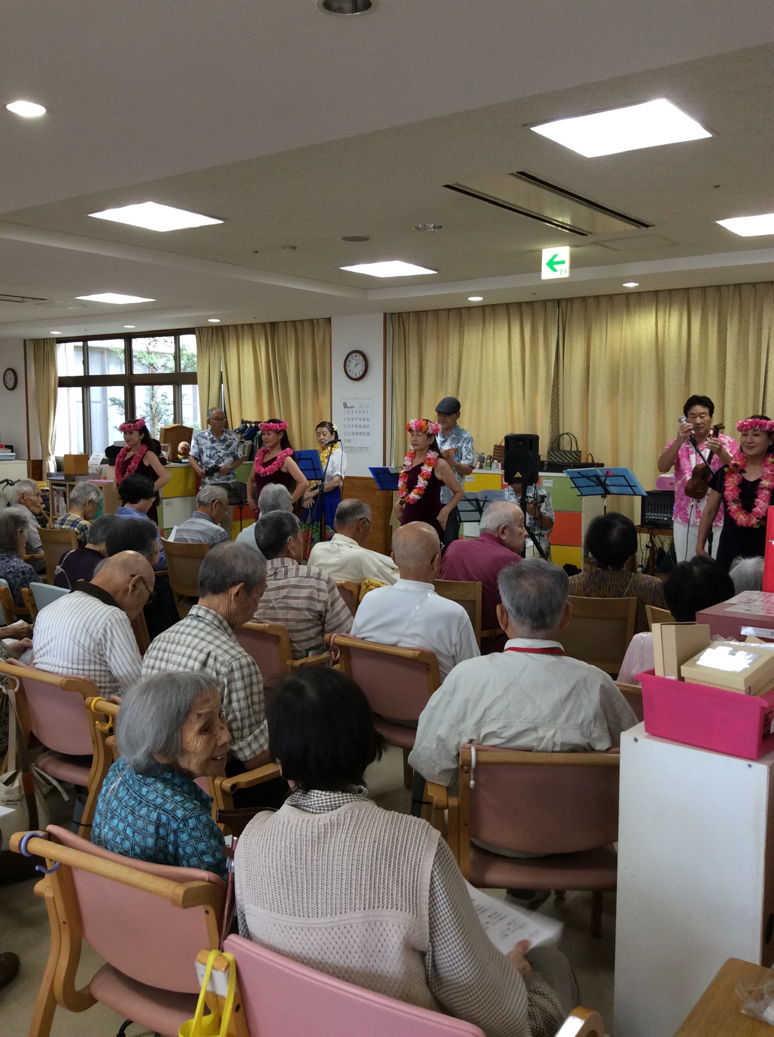 今回も、デイサービスの空気はこの時ばかりはハワイにいるような雰囲気でした。
