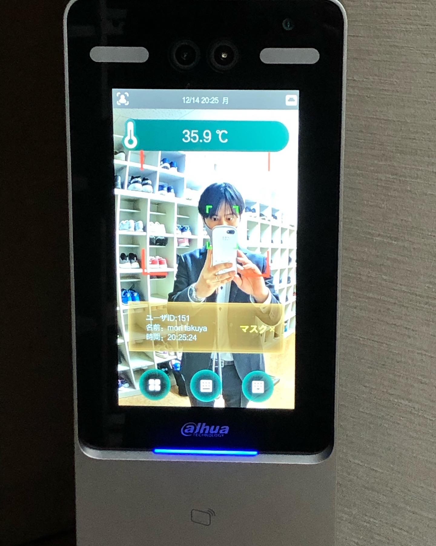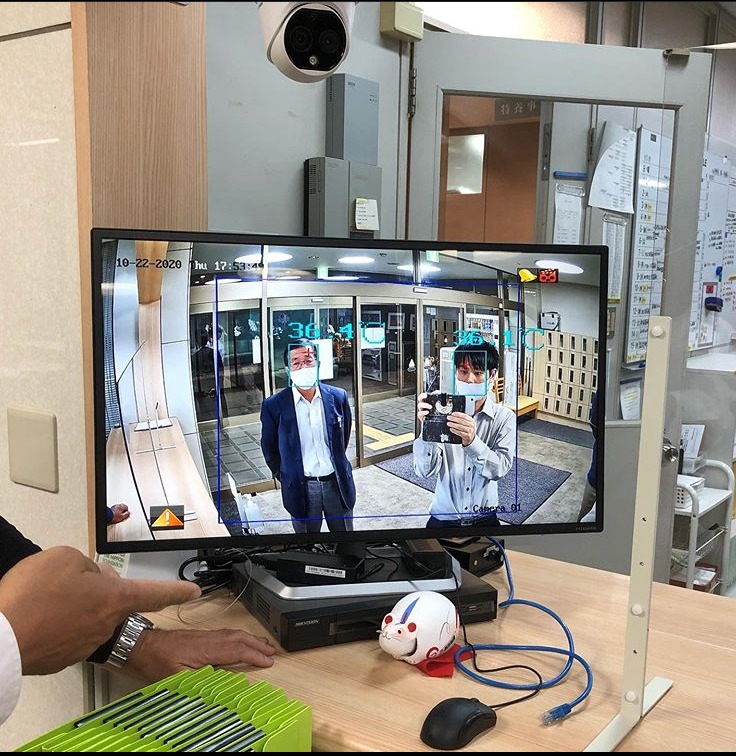 消毒機器の常備はもちろん、休憩室等のパーテーション、面会者用非接触サーマルカメラ(防犯カメラとしても併用)の設置や職員も非接触サーマルカメラで毎日検温を行っています。非接触にしたことにより、職員は共有して体温計に触れることなく検温ができ、万が一発熱した場合は、アラート表示。顔認証登録しているため、名簿等への記載が不要。濃厚接触者も割り出せます。