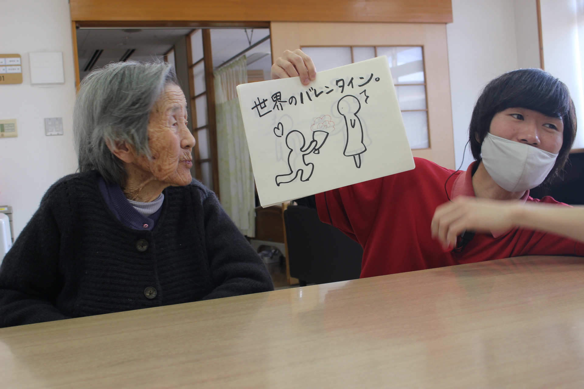 「バレンタインって何ぞや?」という説明や、ちょっとした豆知識に「へぇ」と感心そうに聞いています。