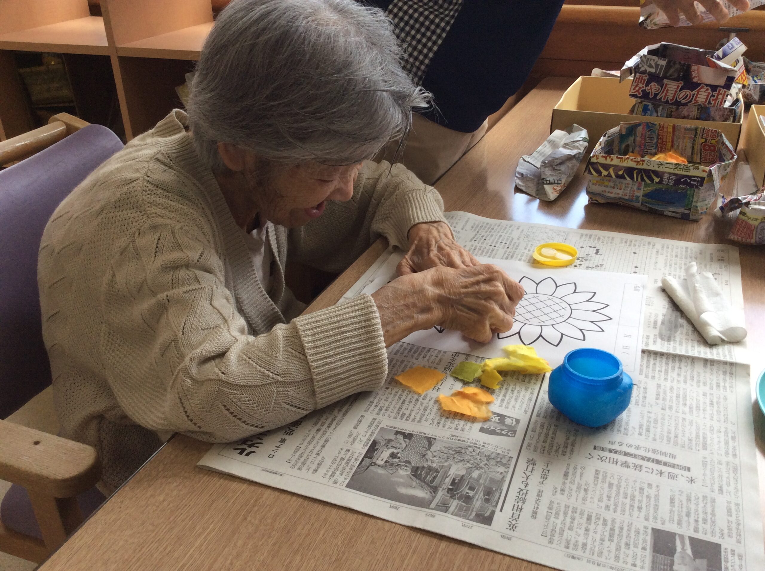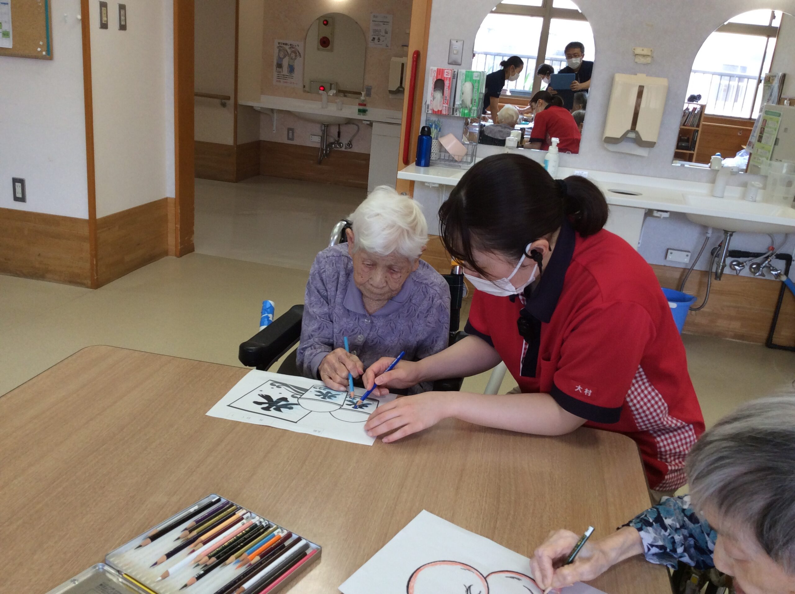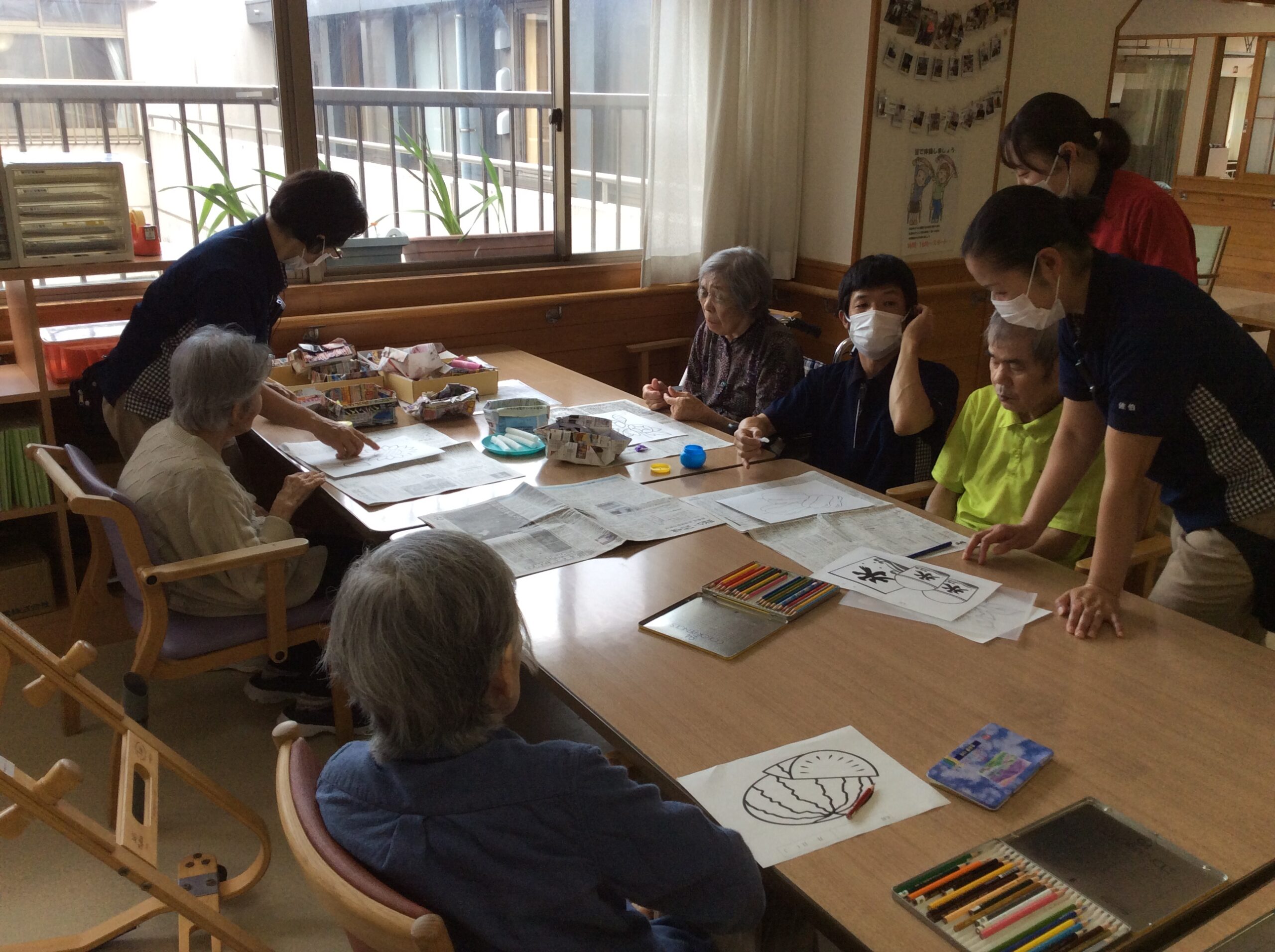 職員が付き添うことで、一人では難しお客様の作品も完成に向かい
