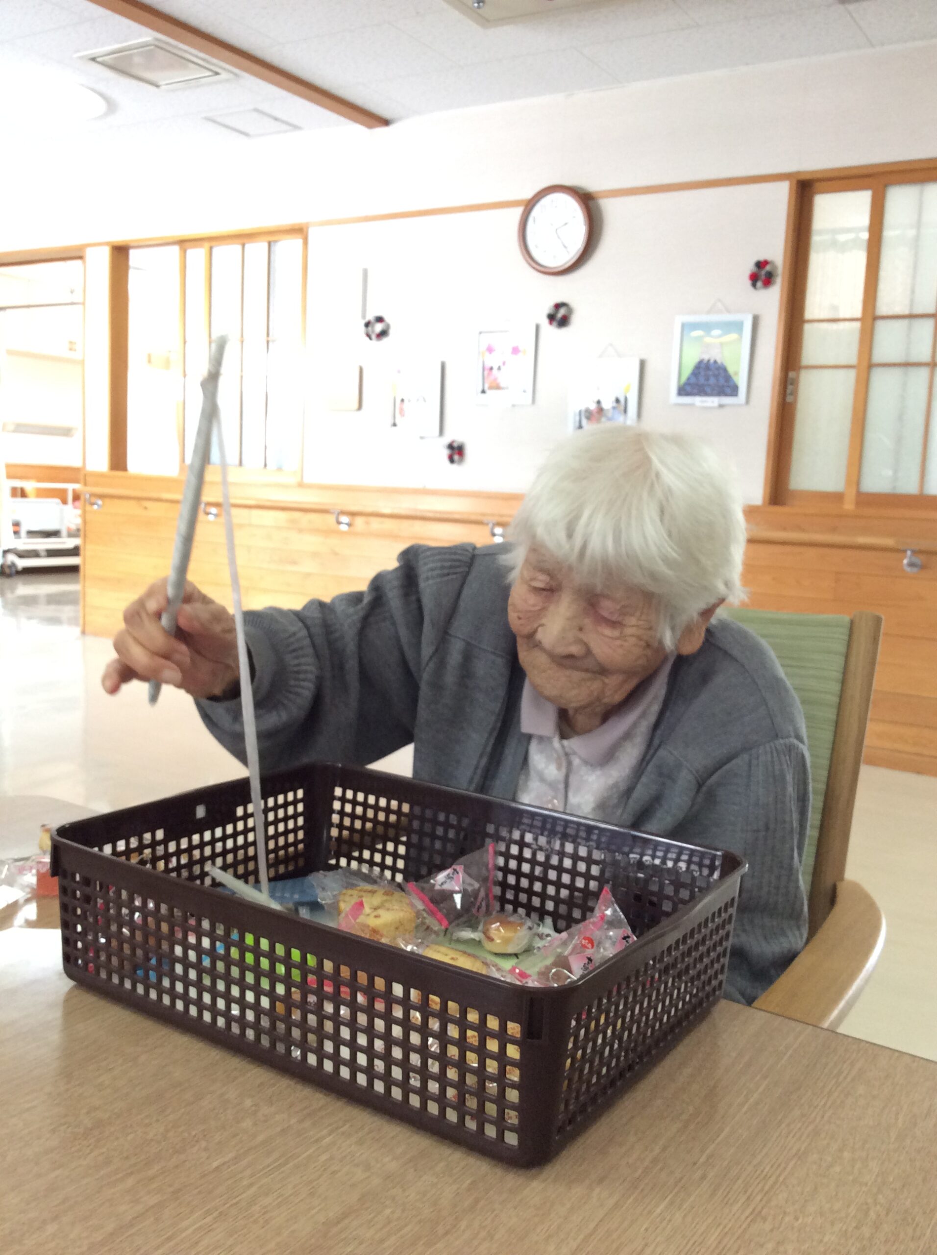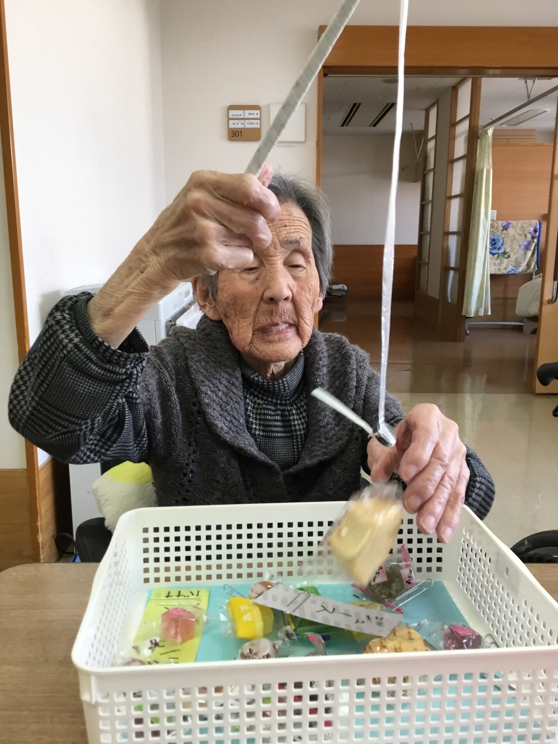 爽やかな今日の午後、和フロアでは、お菓子釣りレクを開催。