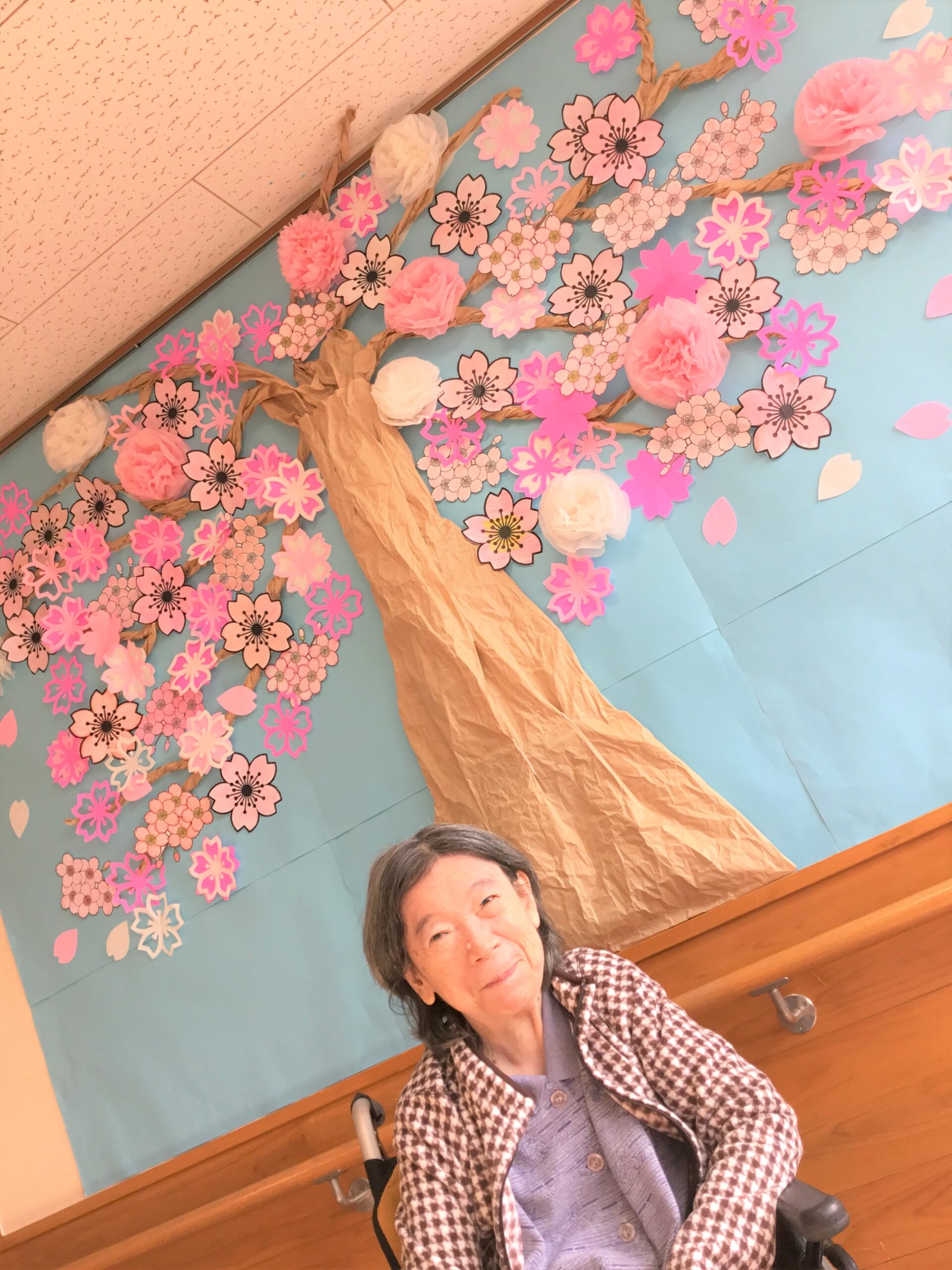 コロナ禍で思うように外出できず室内で過ごすことが多いので、気分転換と春の季節感を味わう為に飾りつけをしたフロアを花見会場に変貌させ、桜を感じるレクリエーションを行いました!