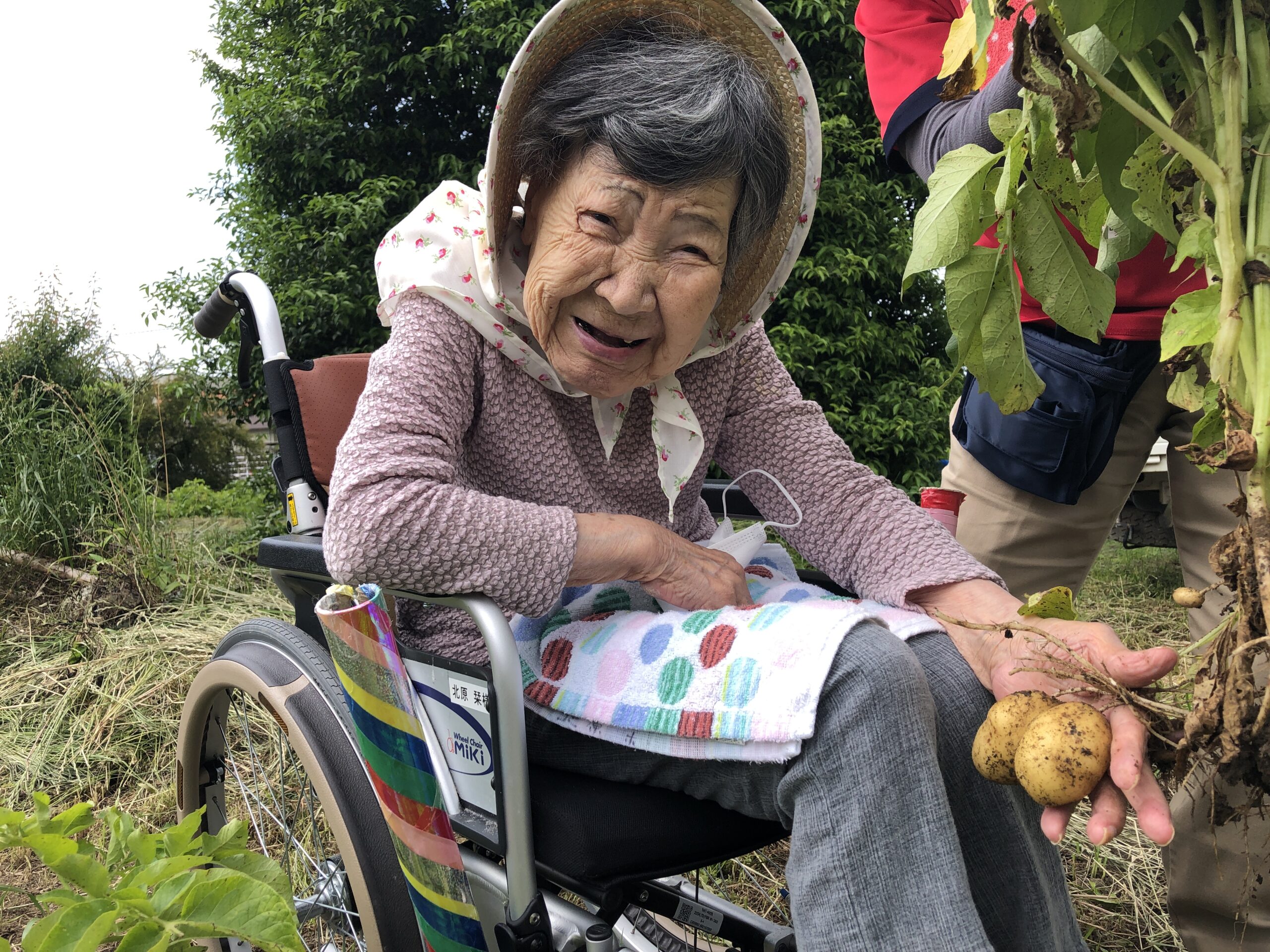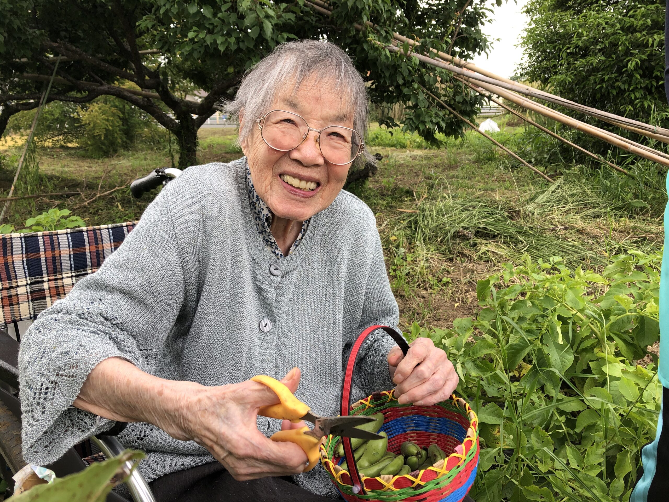 収穫を高麓の各サービスを利用されているお客様と一緒に収穫し、コロナ禍で鬱屈な気持ちを吹き飛ばし、活動していただくもの。