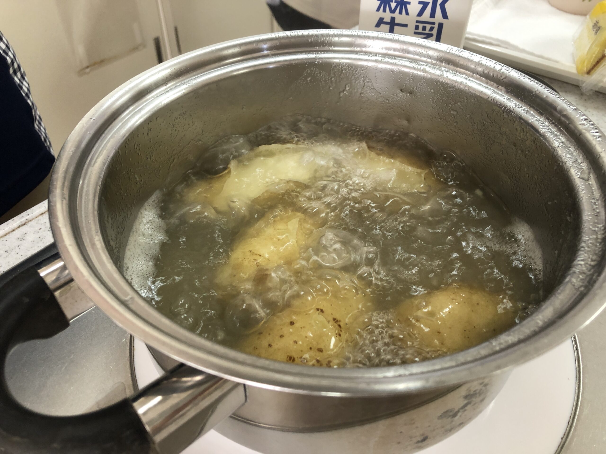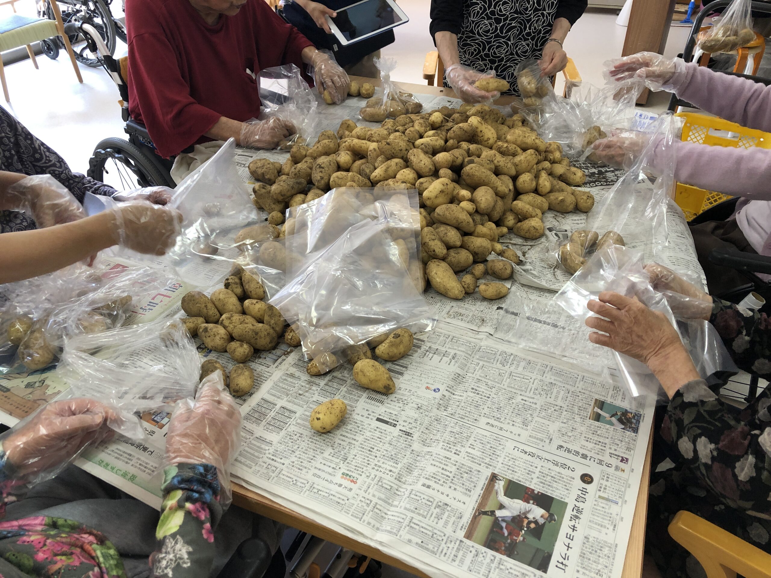 収穫した農作物は、皆さんで洗いふかし芋として召し上がっていただいたものと職員用の販売所へ