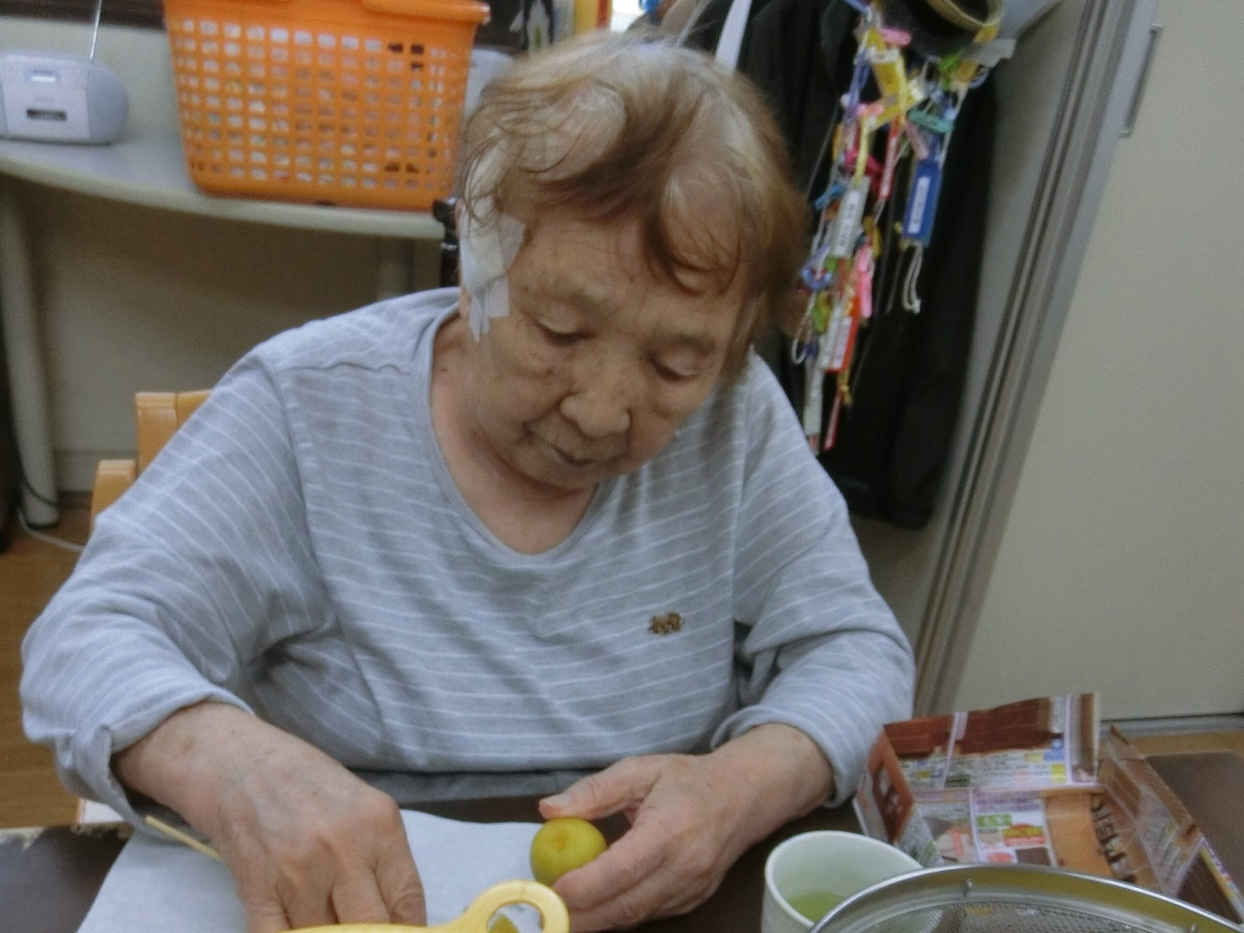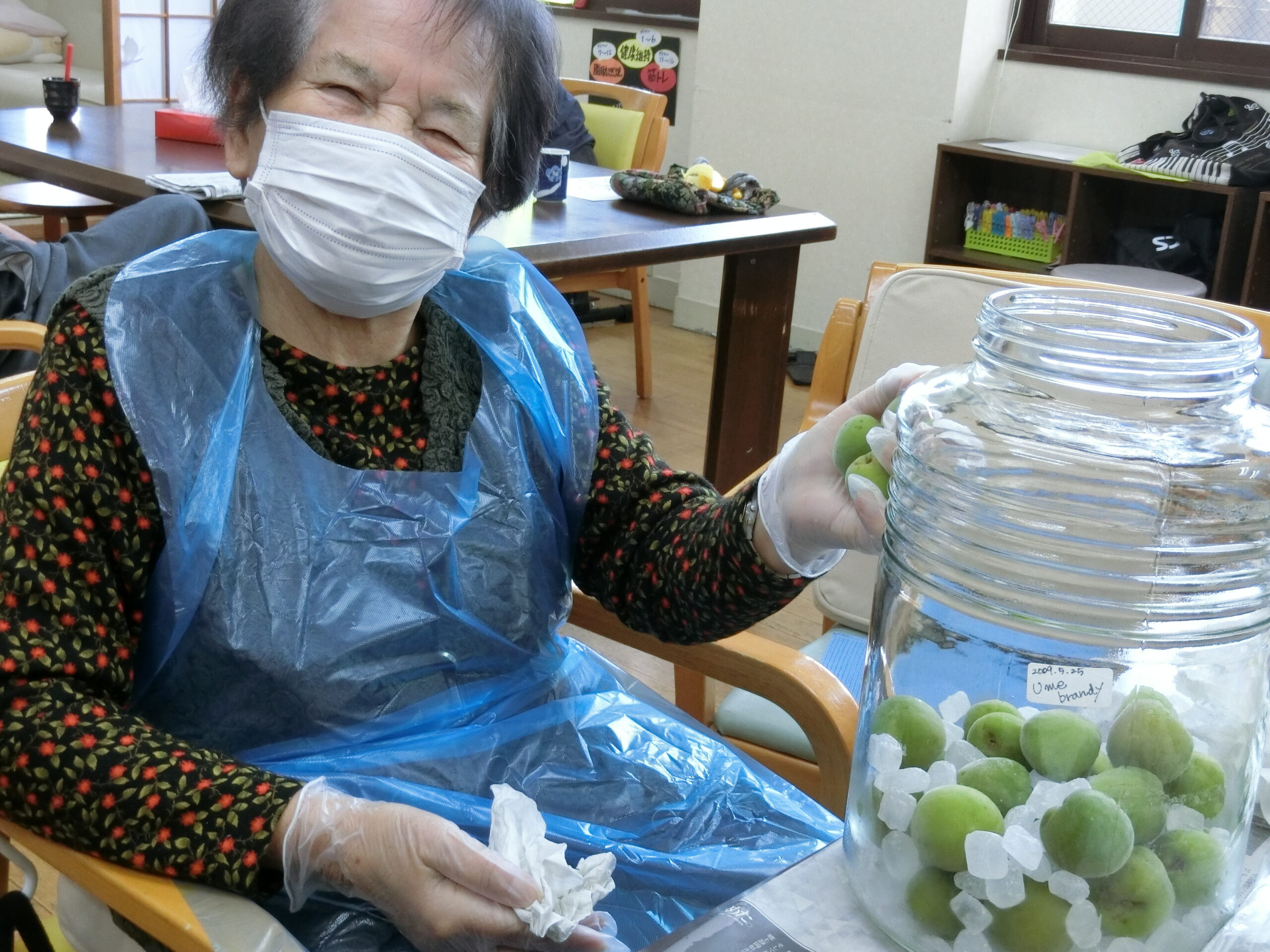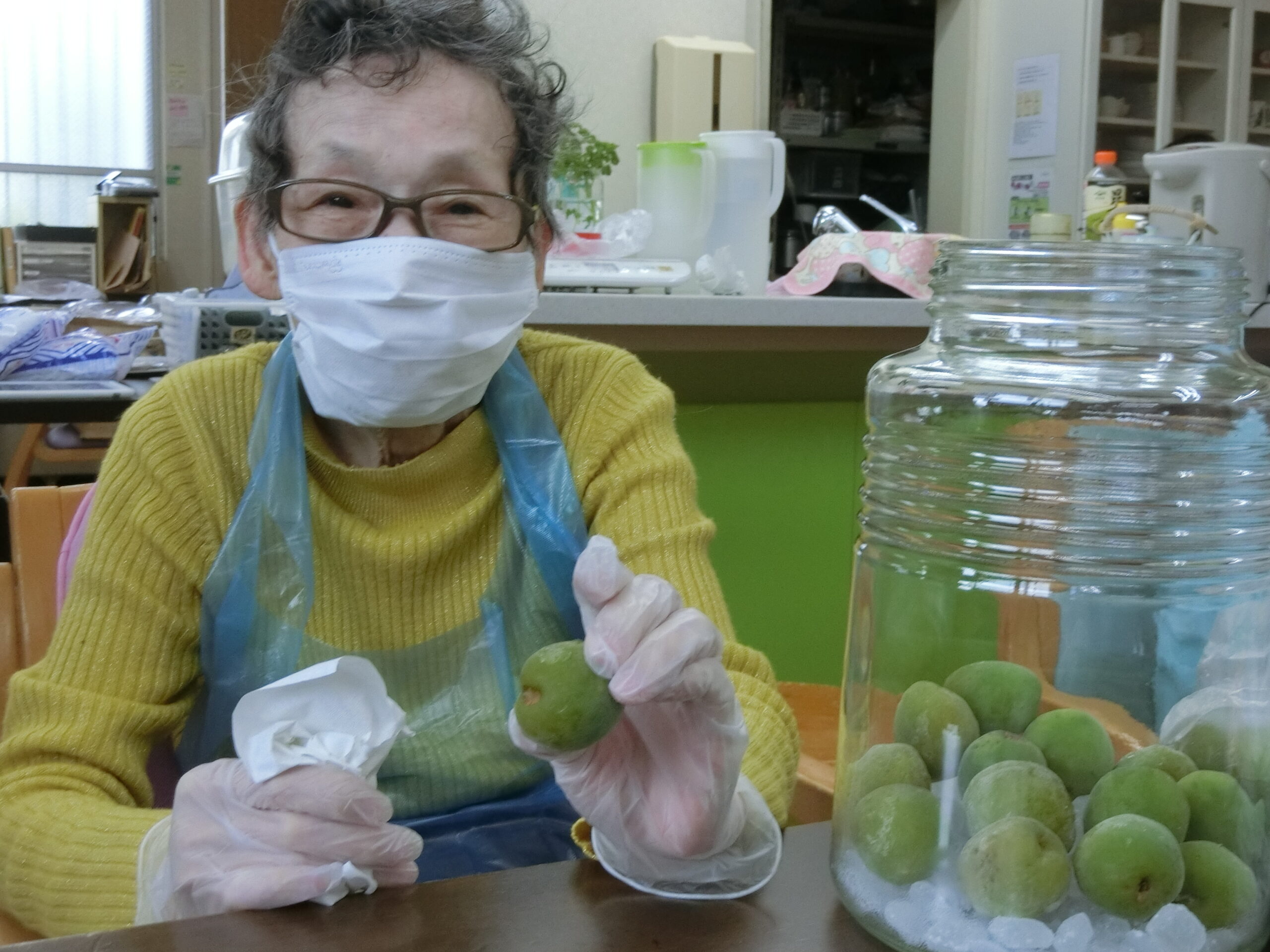 「梅のいい香りがするね」「出来上がりが楽しみだね」「私も手伝うよ」とみなさんで出来上がりを楽しみに頑張って取り組んでくださいました。