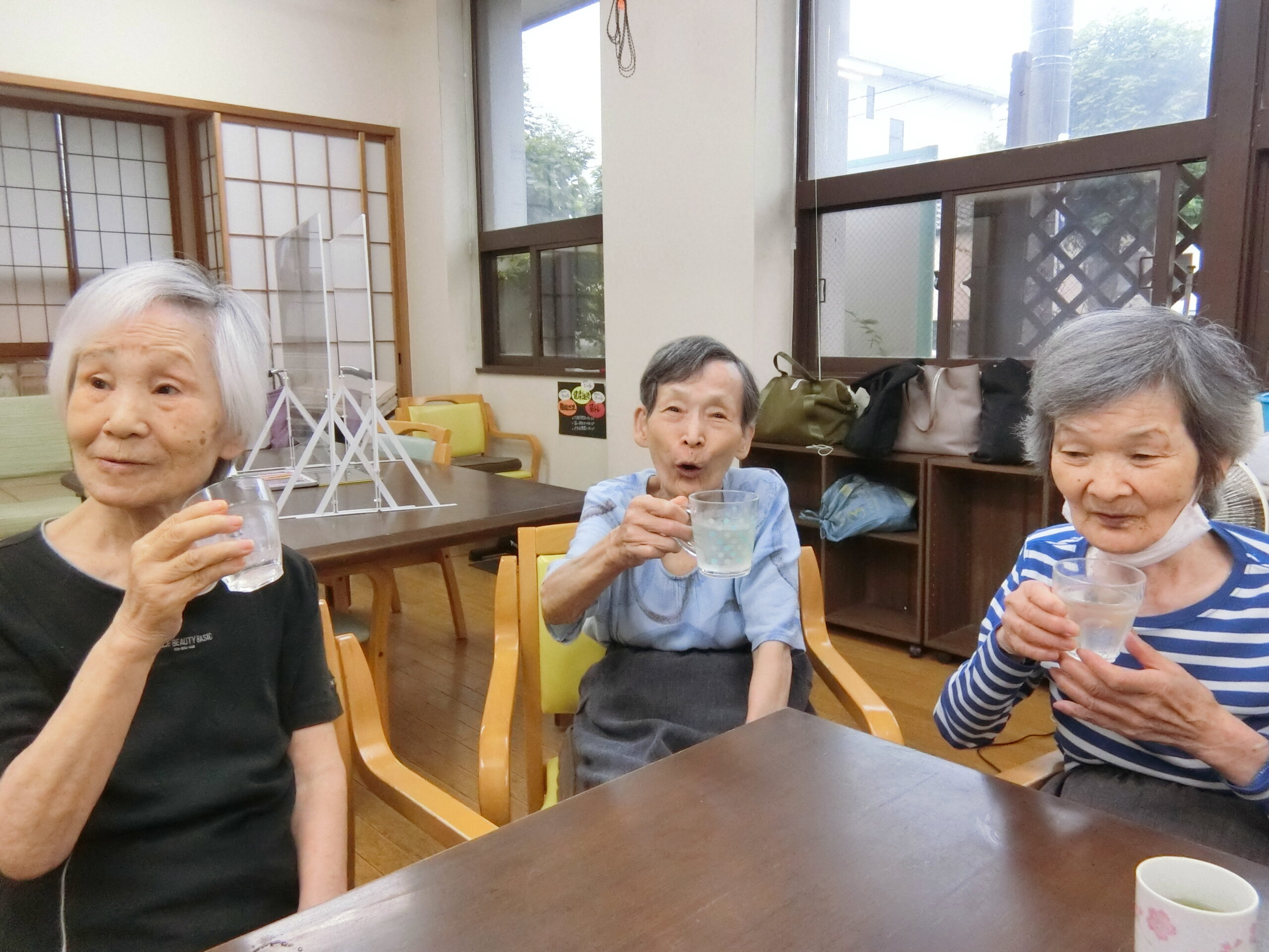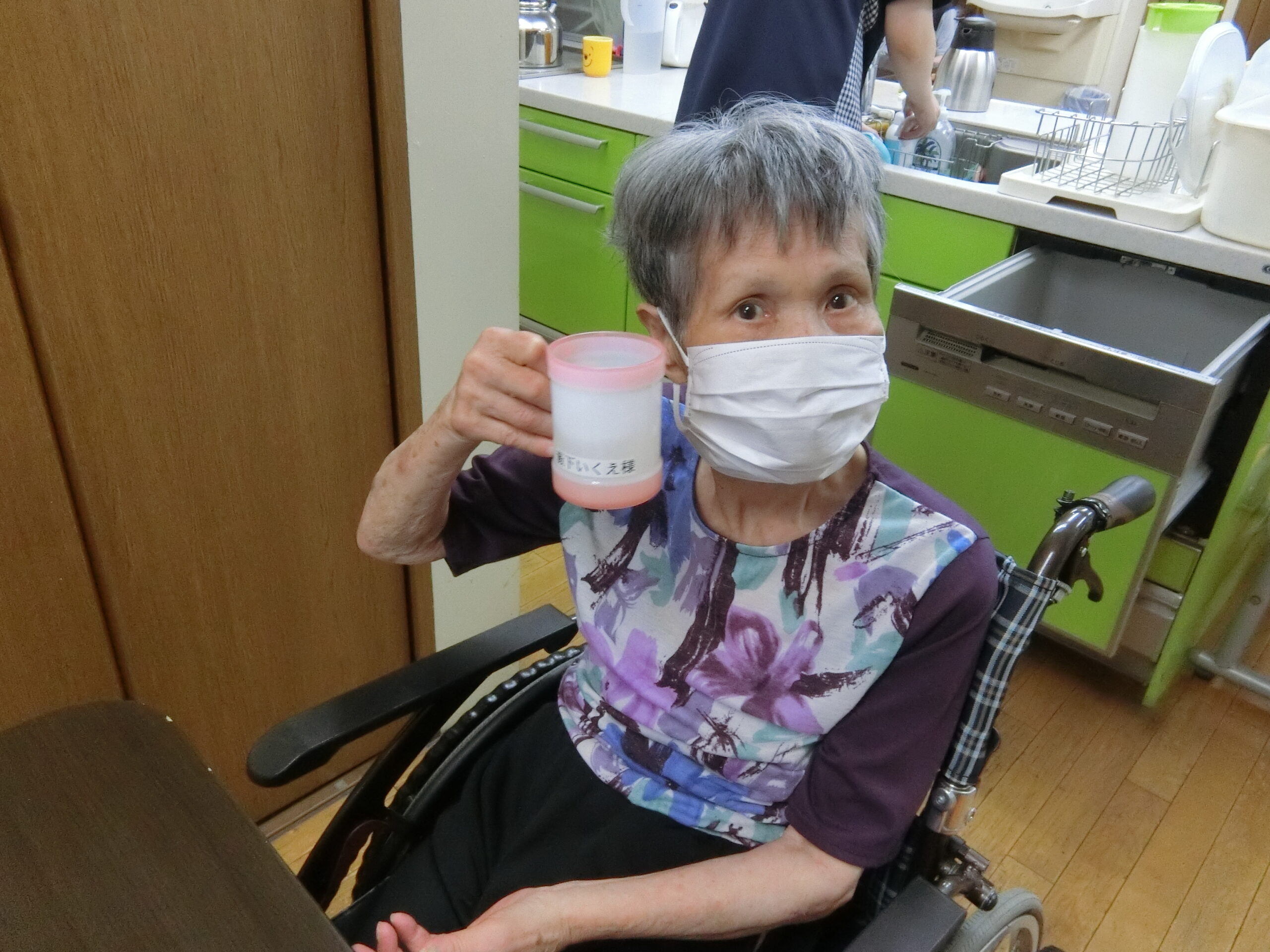 7月になり、暑くなってきたので炭酸水や水で割ってみなさんで梅ジュースにしていただきました。