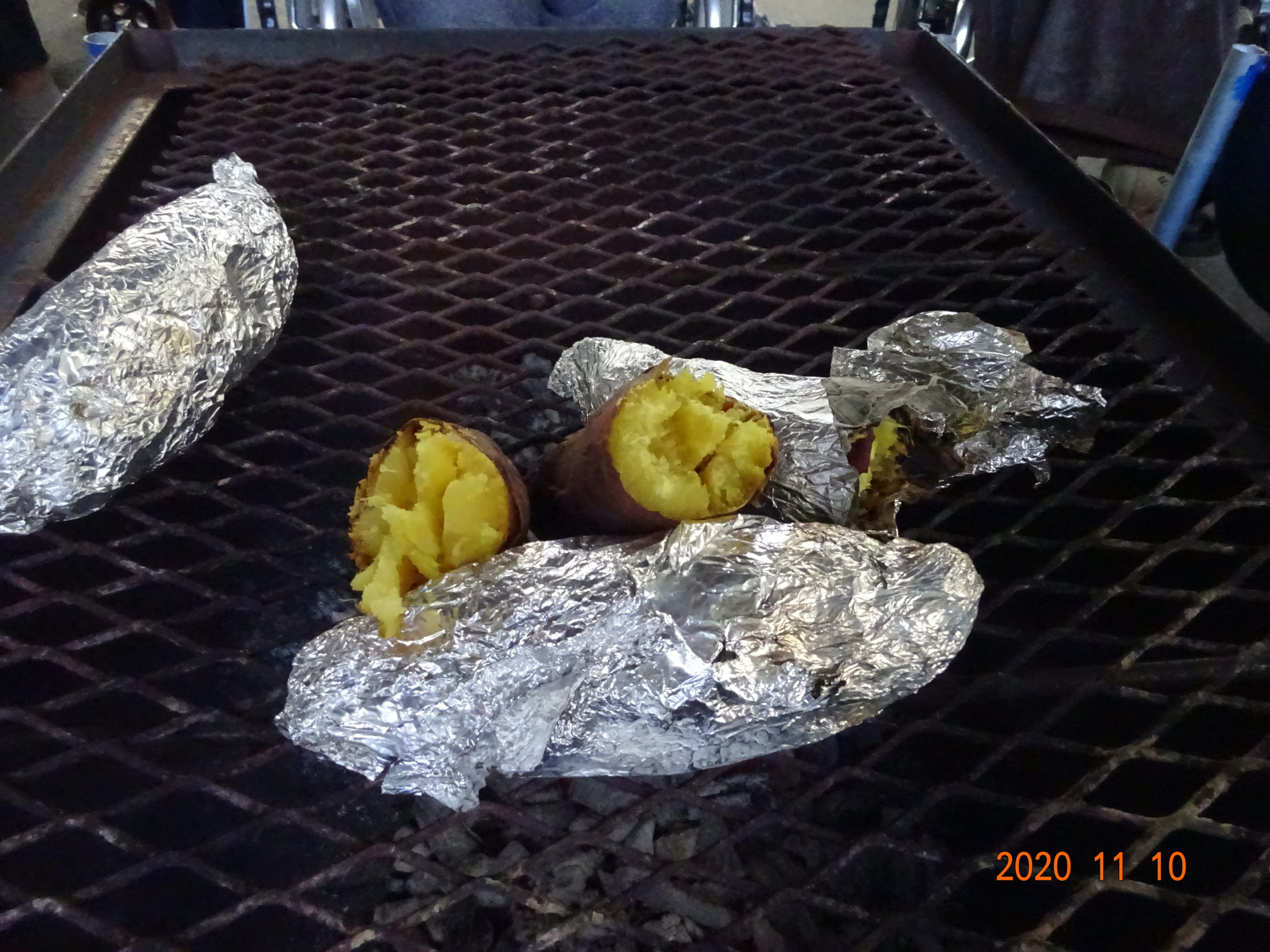 昼前から炭を熾し、1~2時間かけてゆっくり焼き、小腹がすいた2時頃にはほっこり焼きあがりました。