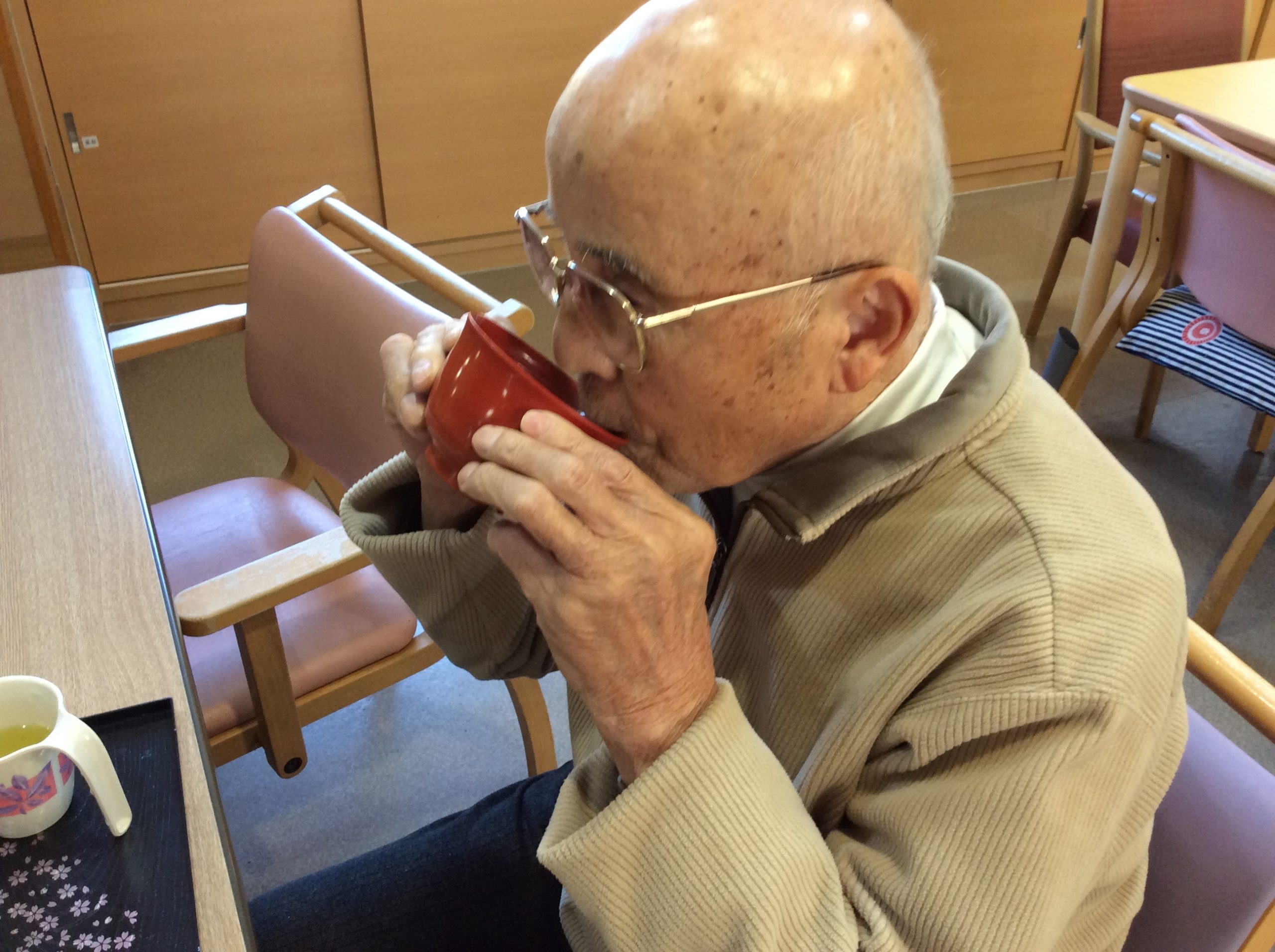 お鍋でグツグツすると良い匂いが漂い「お~甘酒か~飲みたい」と声もあがり皆さん笑顔です。ゴクゴク一瞬で甘酒がお椀から消えちゃいました。