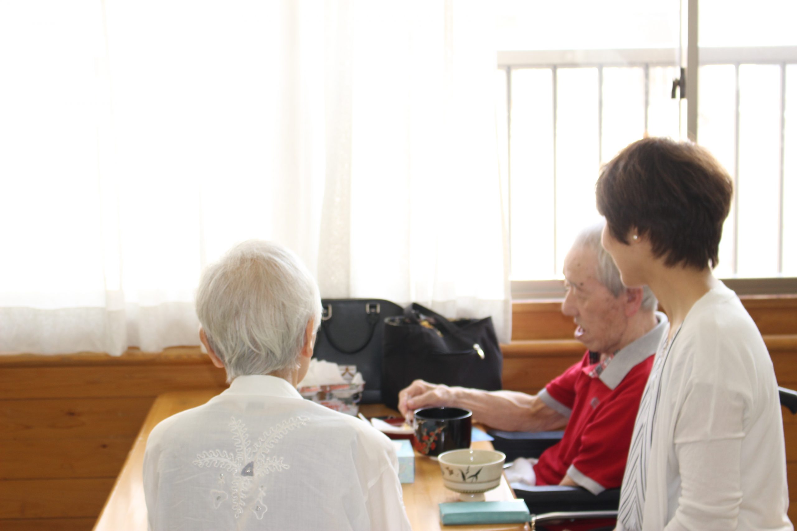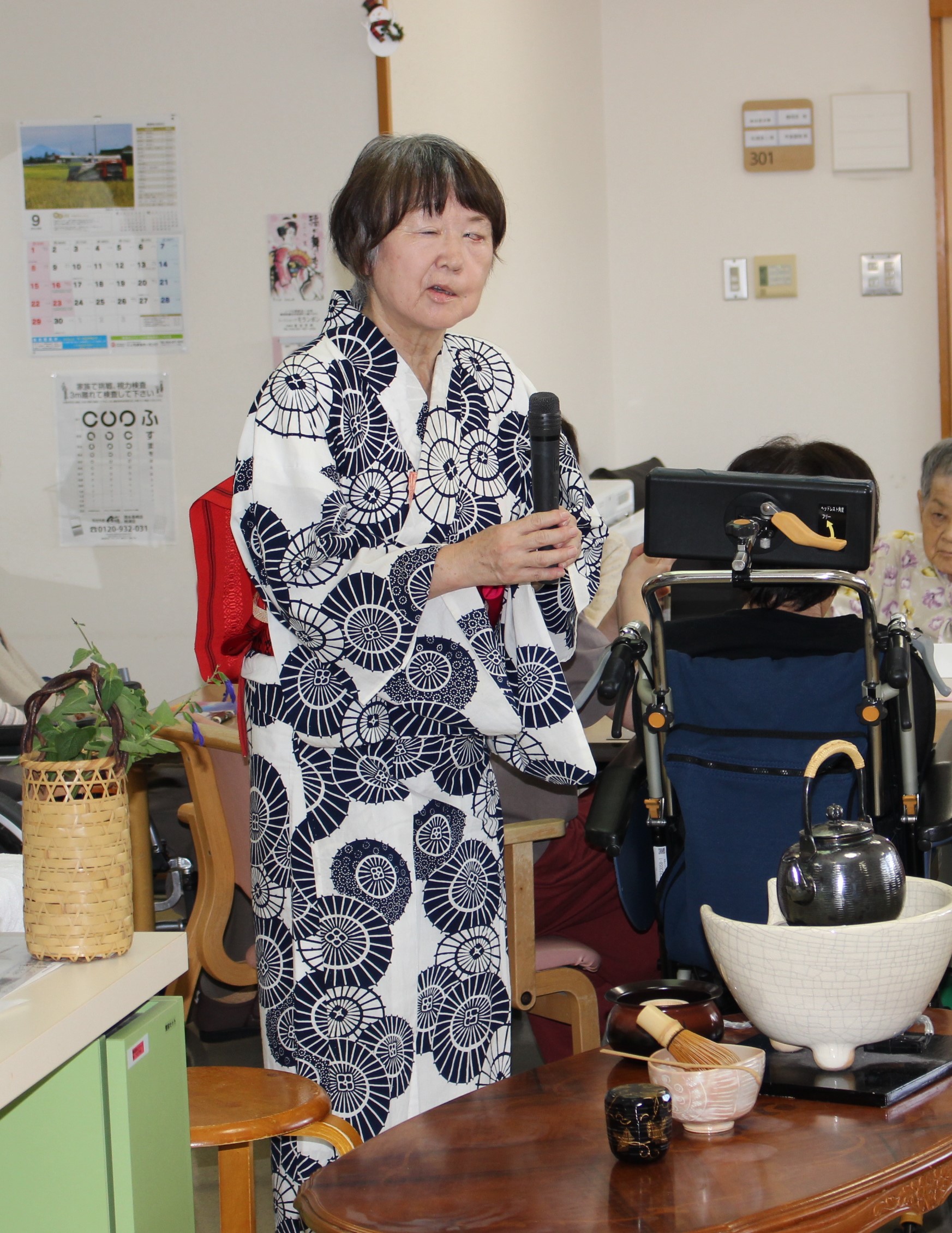 着物を着た職員が茶筅で本格的にたてたお茶は、香りが抜群!
