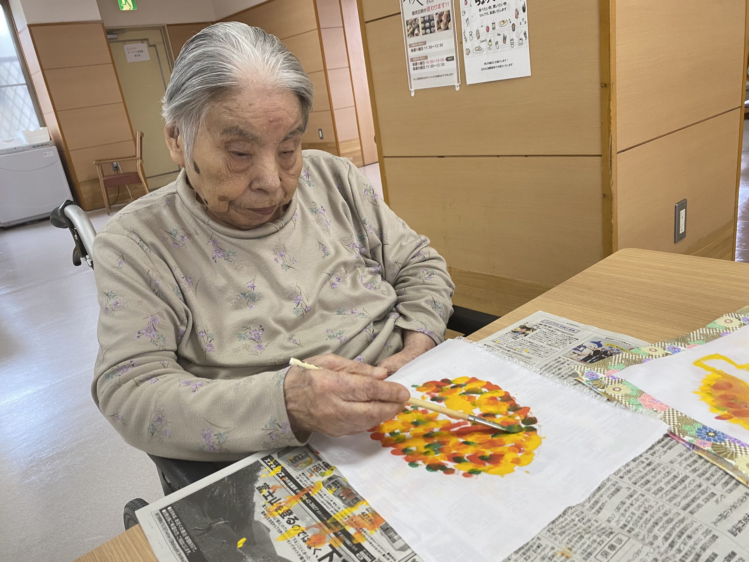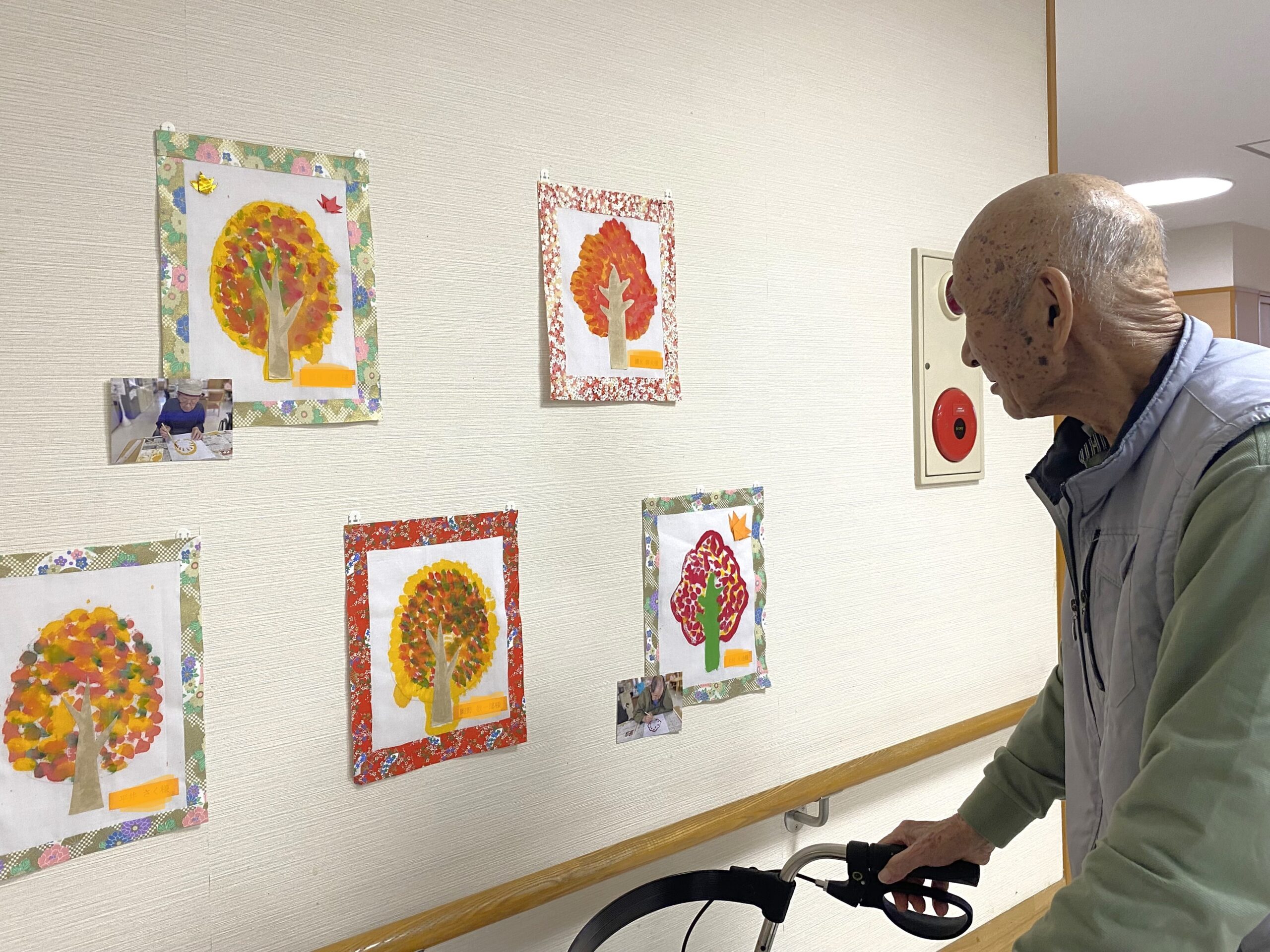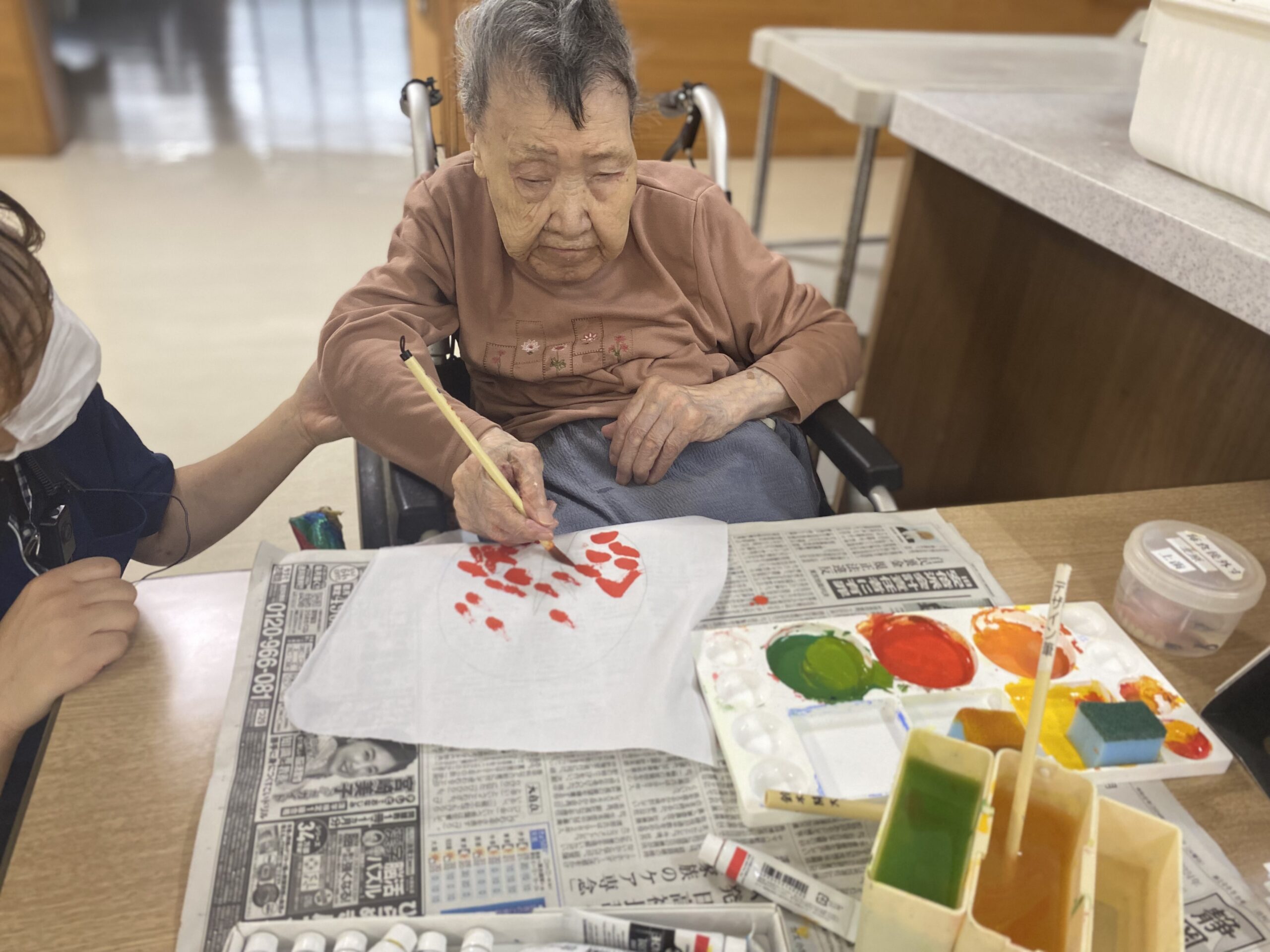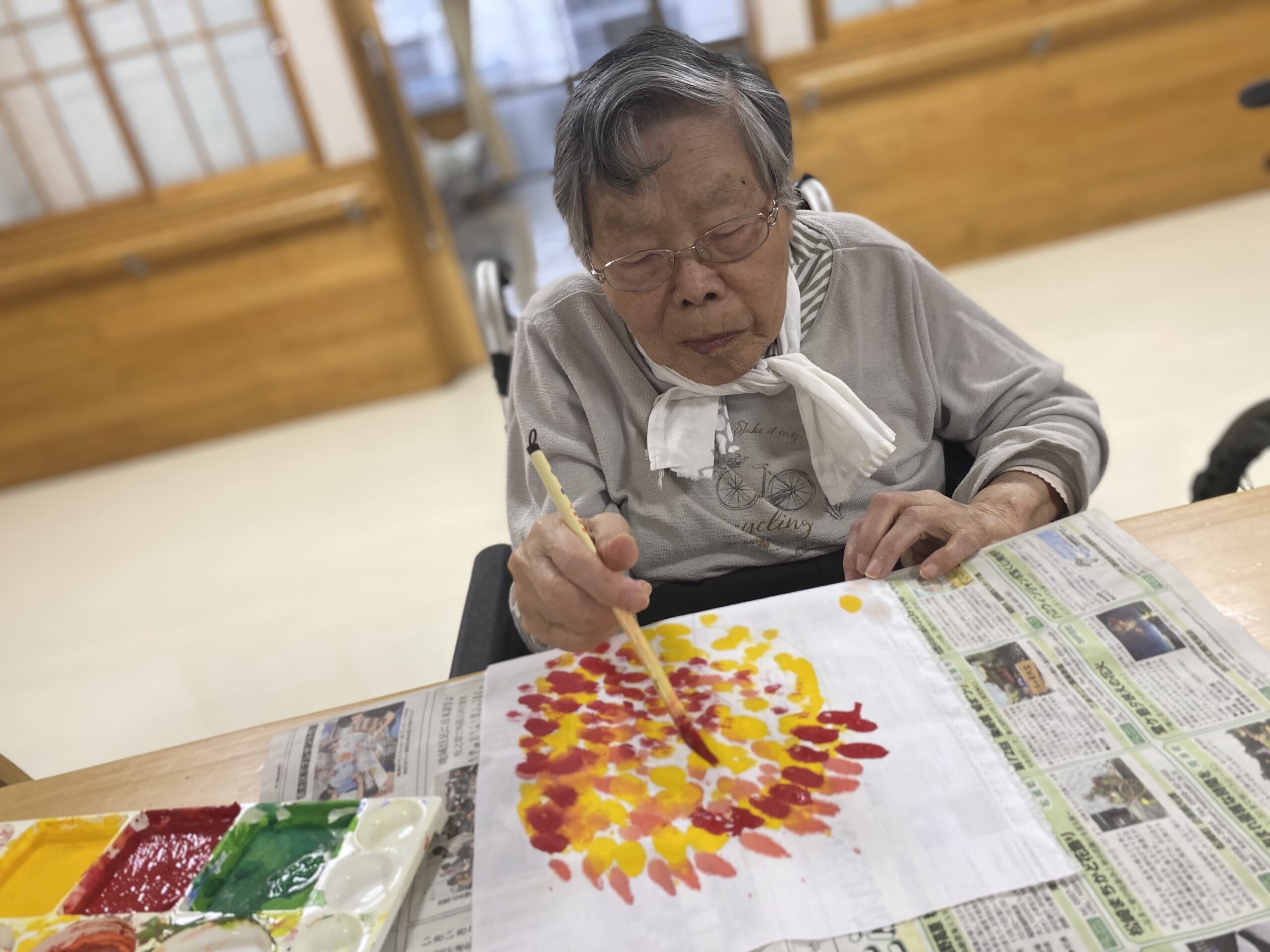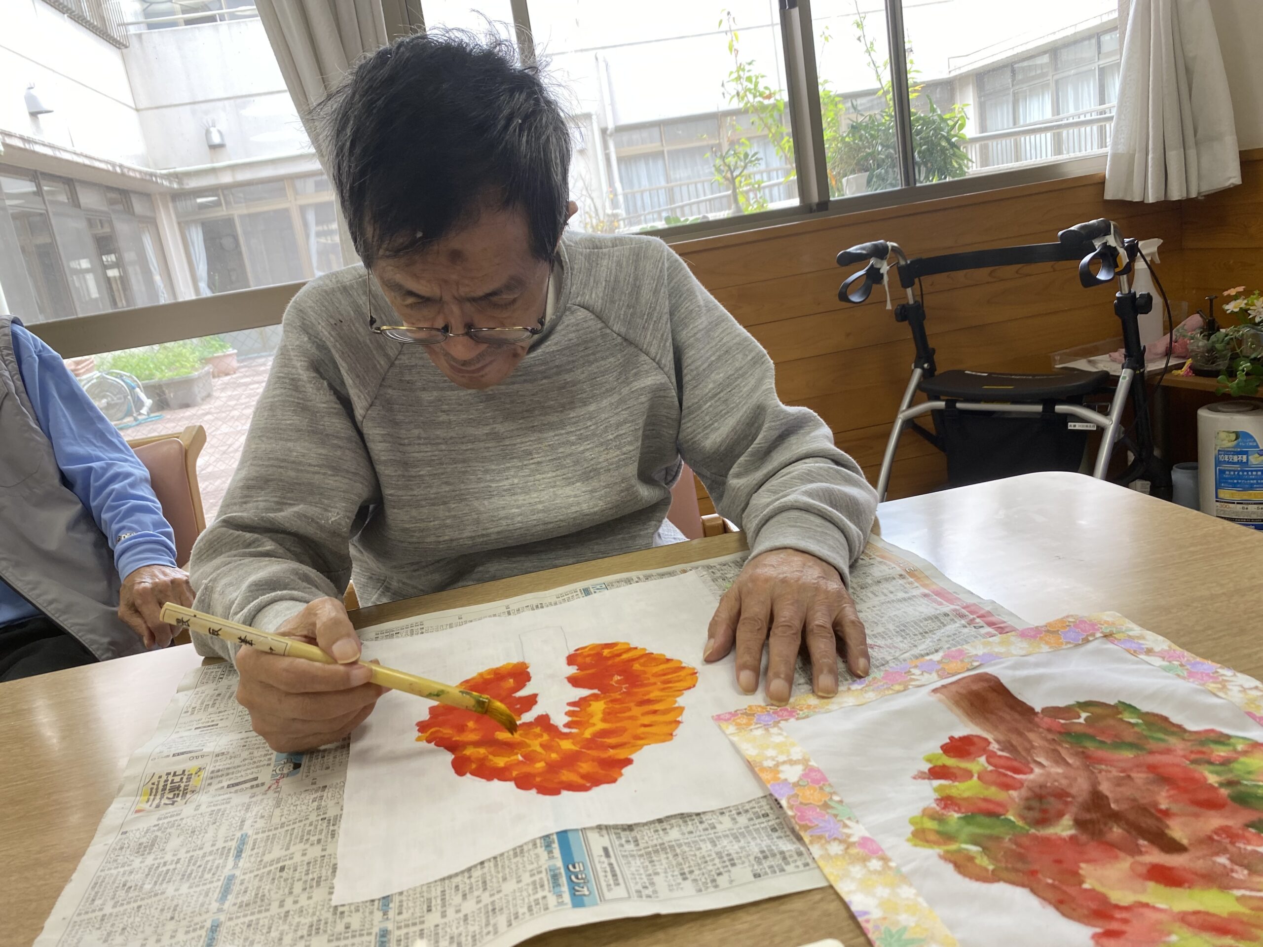 今回は絵具を使い、いつもとは違う壁面飾りを