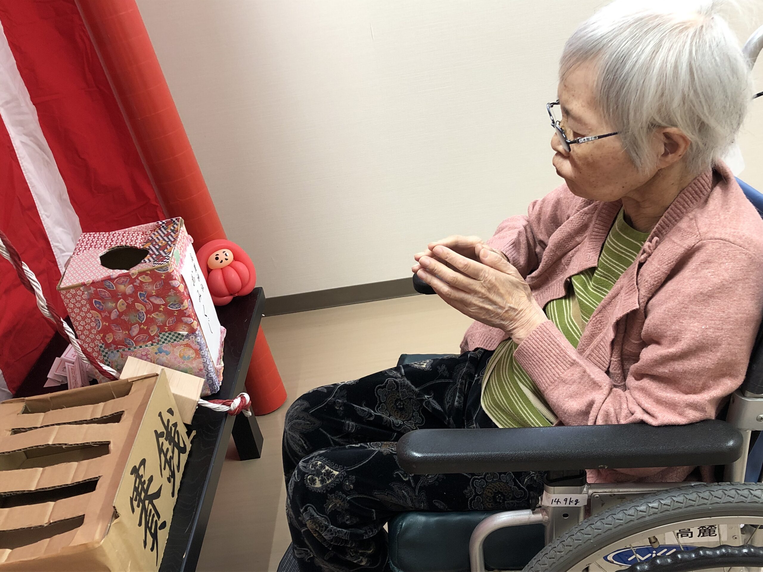 今年は感染対策のため面会制限が続く中、少しでもご家族の皆様に日々の笑顔をお伝えできるよう、年末年始でのイベントを増やしました。