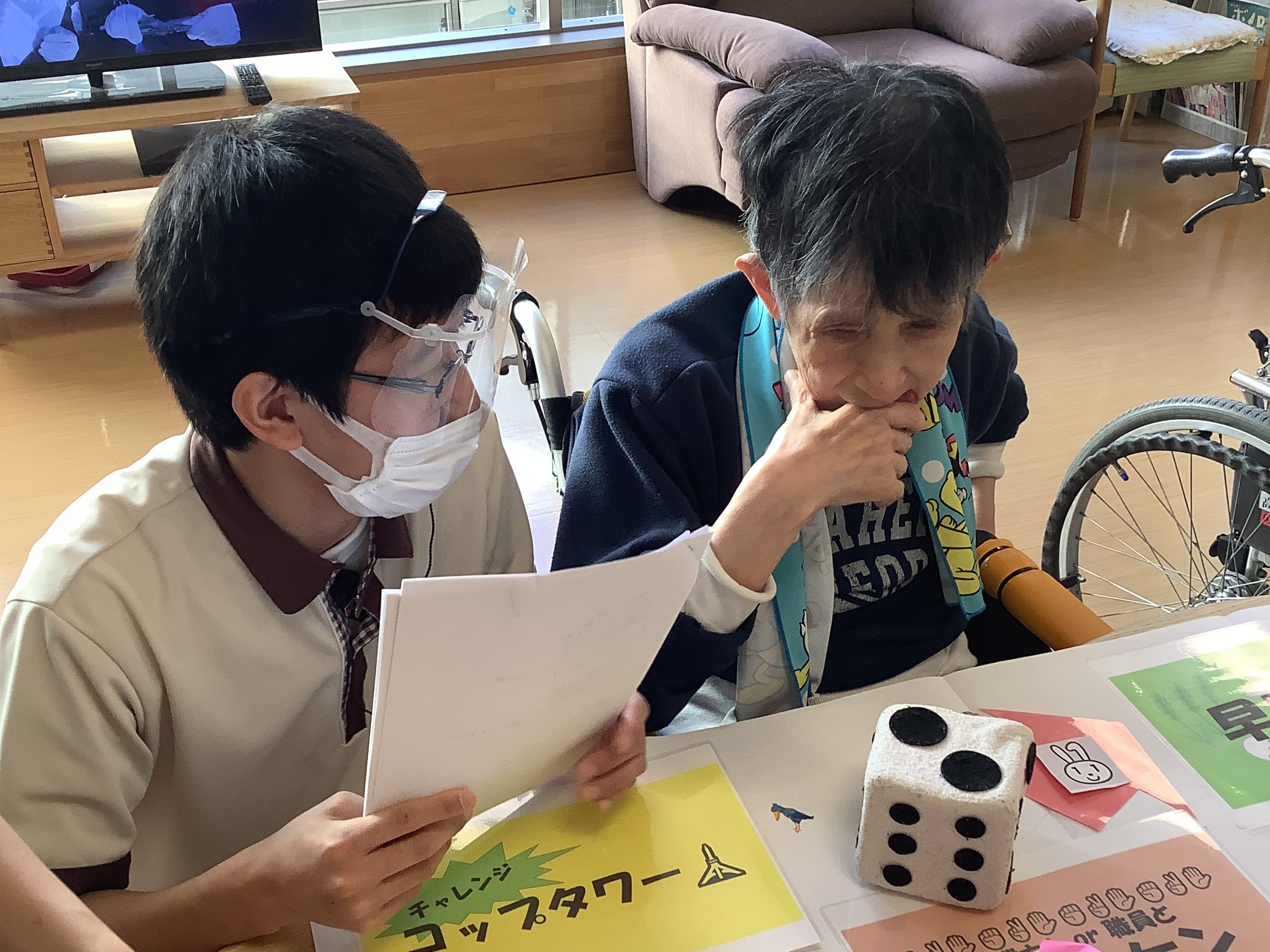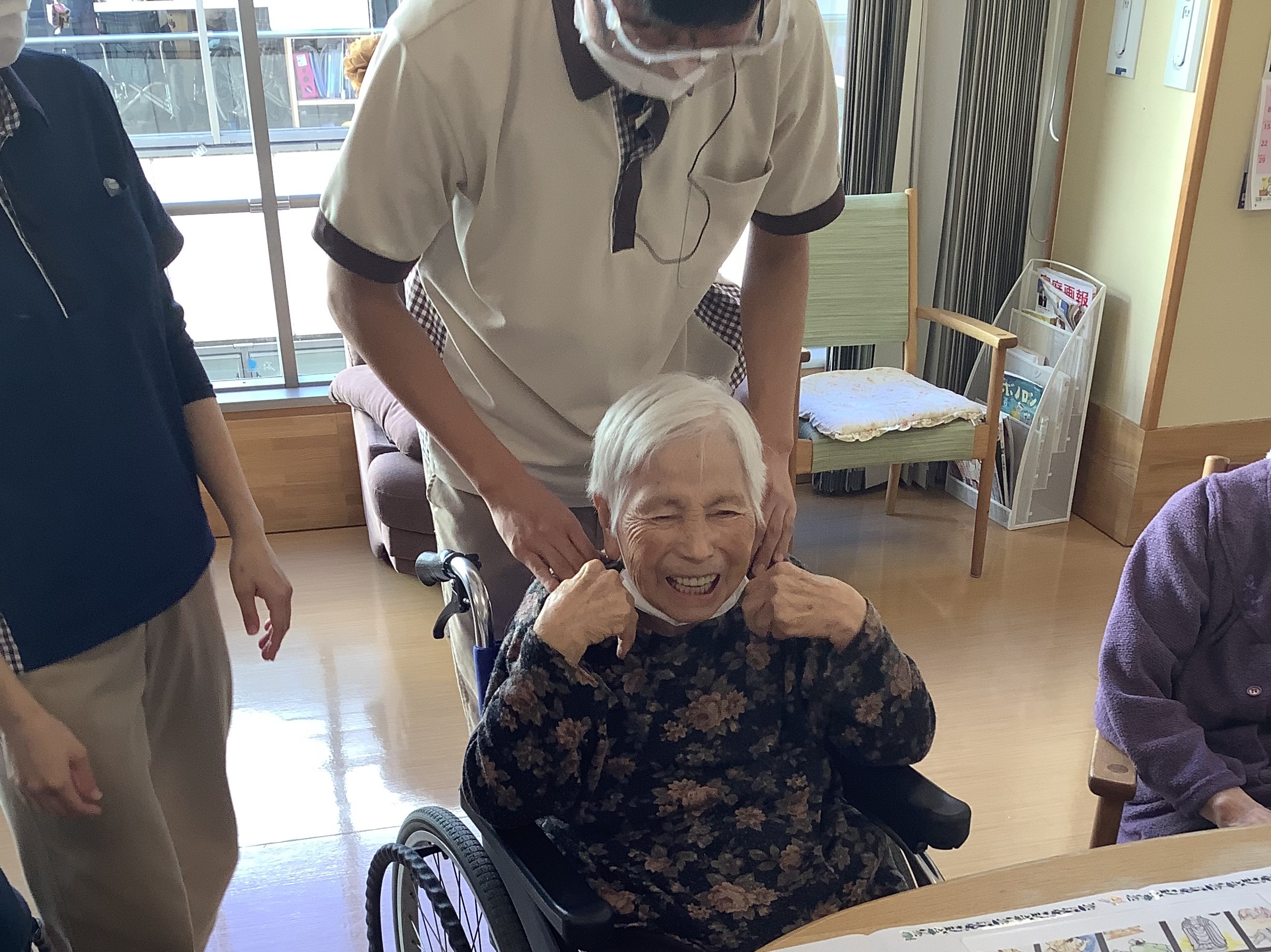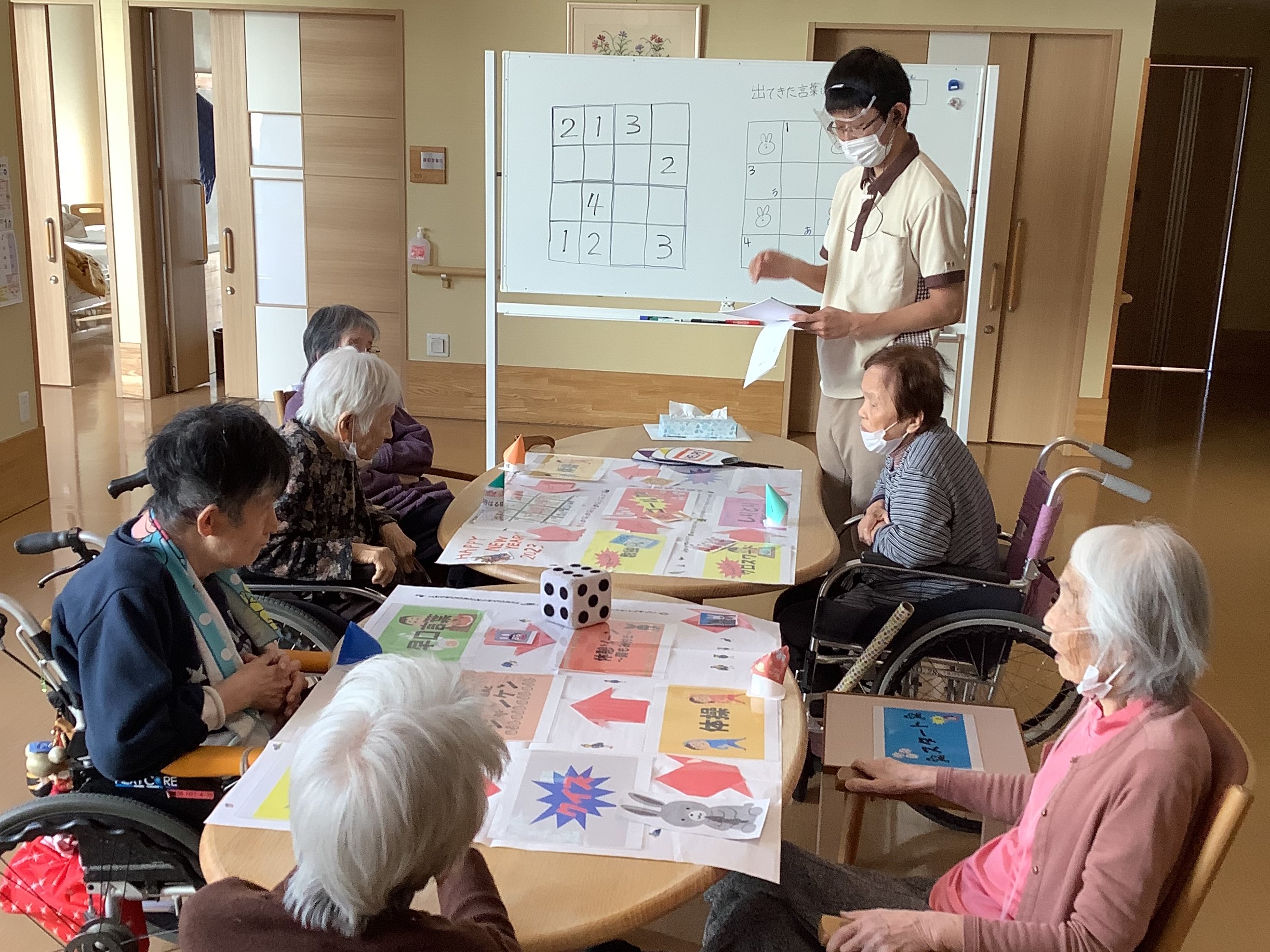 この企画は新卒1年目の職員が、入職後初めて主体的に企画したもので、普段ケアをさせていただくお客様に、気持ち新たに何か楽しんでいただけることはないだろうかとお客様に意見を伺ったり、先輩職員からサポートをもらって実施したものです。