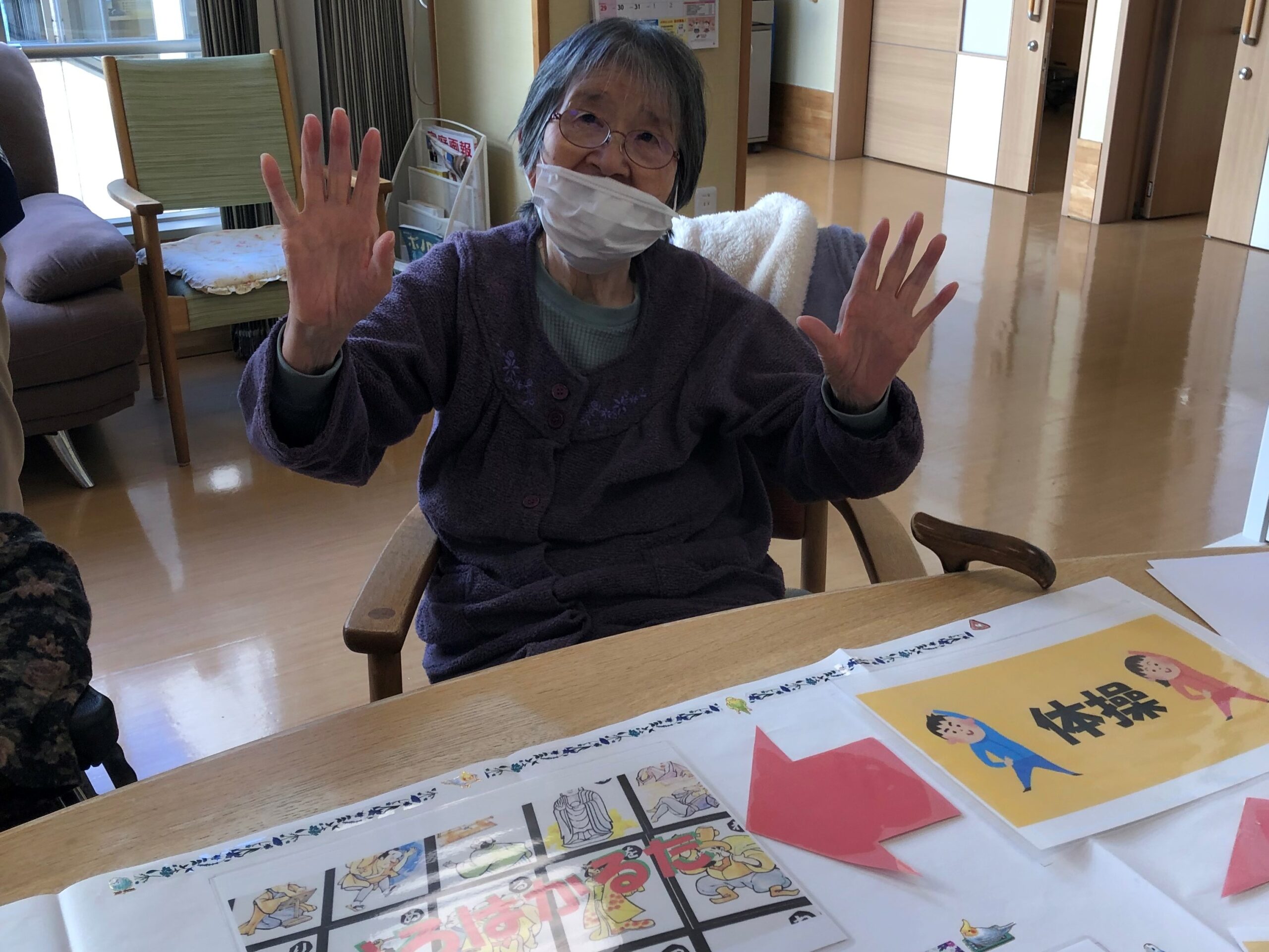 企画は笑顔の他に手先や足の運動を組み込むことや脳トレも組込み、