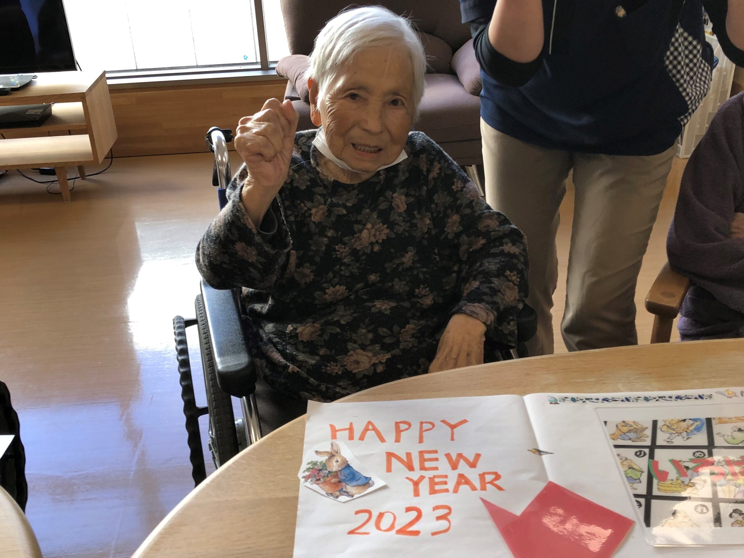 ユニット3階では、三が日をお正月らしく楽しんでいただこうと、昔ながらの遊びや食事内容を体験して頂く企画をしました。