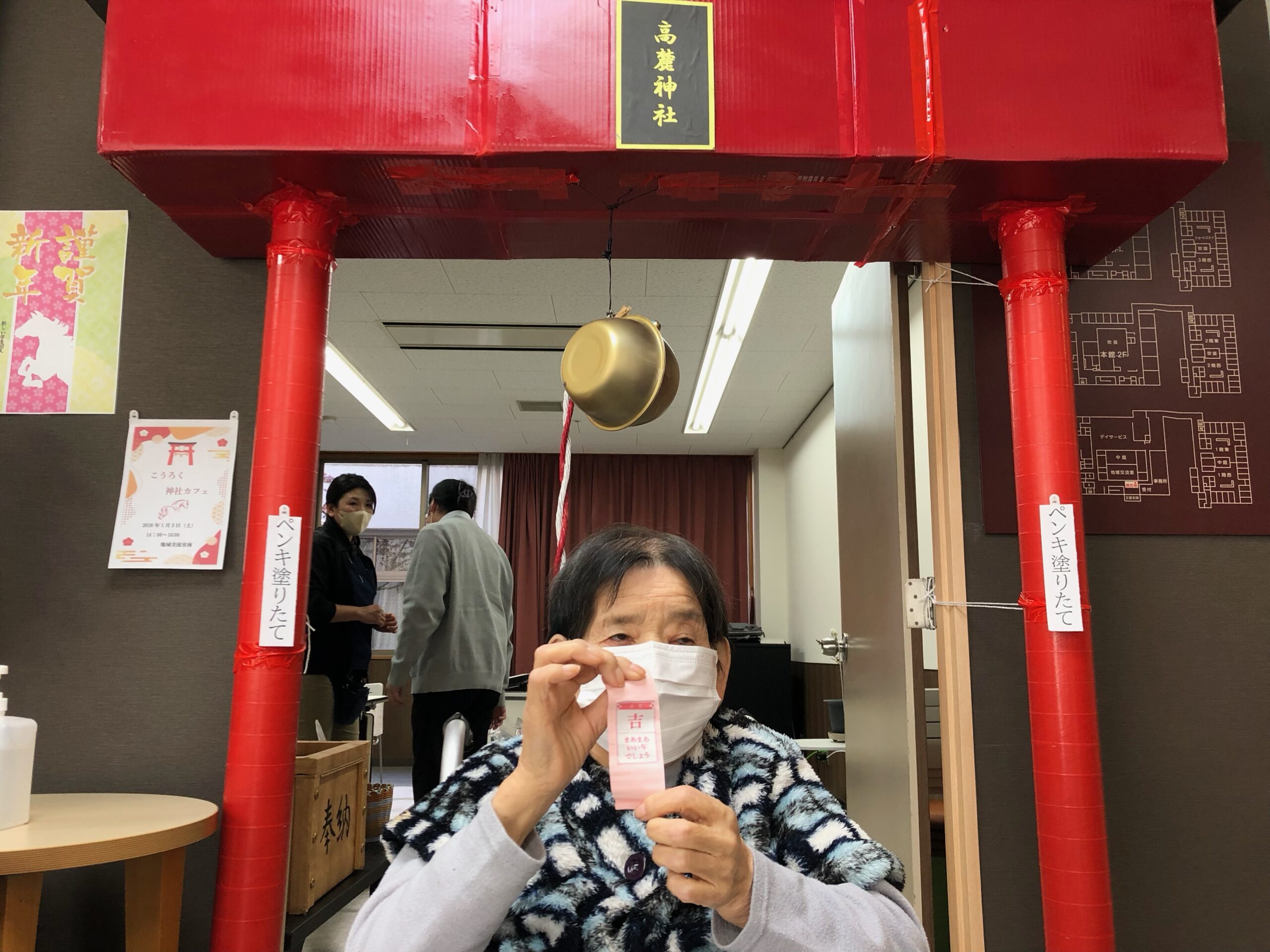 高麓では、この時期なかなか外に初詣に行けないお客様のために施設内神社「高麓神社」が設置され、毎年お客様が参拝をされます。