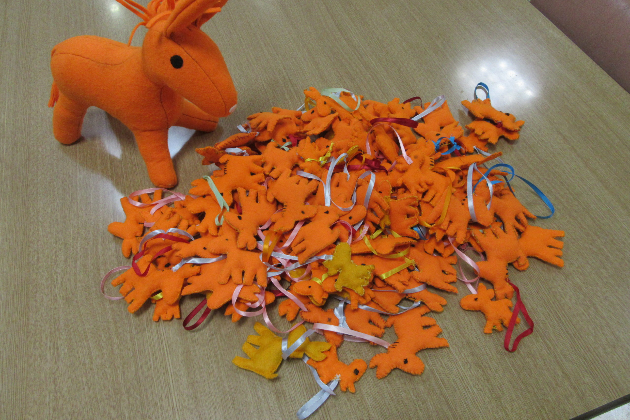 10/7は先日お知らせしました認知症サポーターキャラバンのマスコット”ロバ隊長”の出陣式です。デイサービスに通われている裁縫が得意な皆さんで作ったロバ隊長(100匹以上)が出陣する時が来ました。市役所より職員さんがお見えになり、いざ、出陣!です。