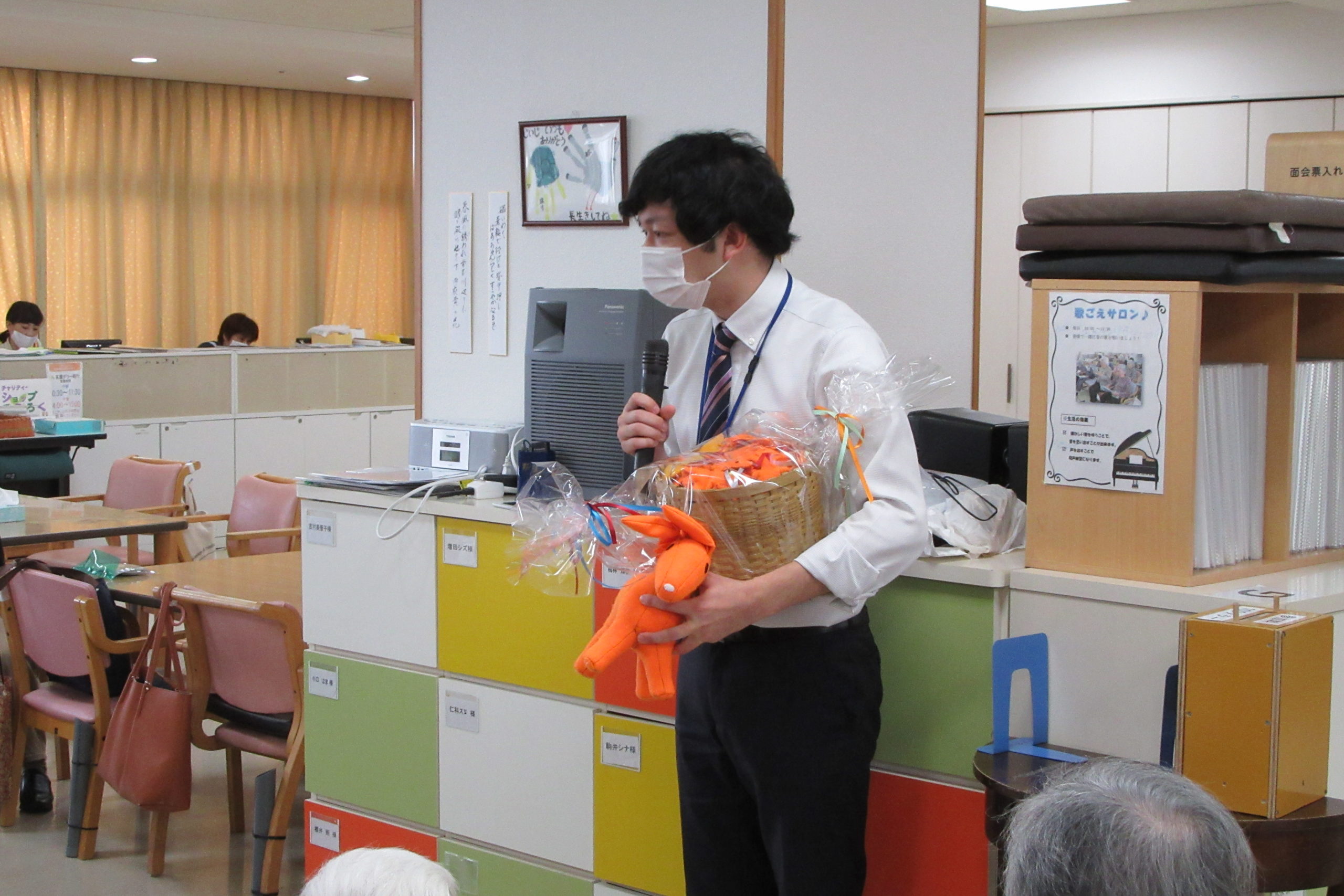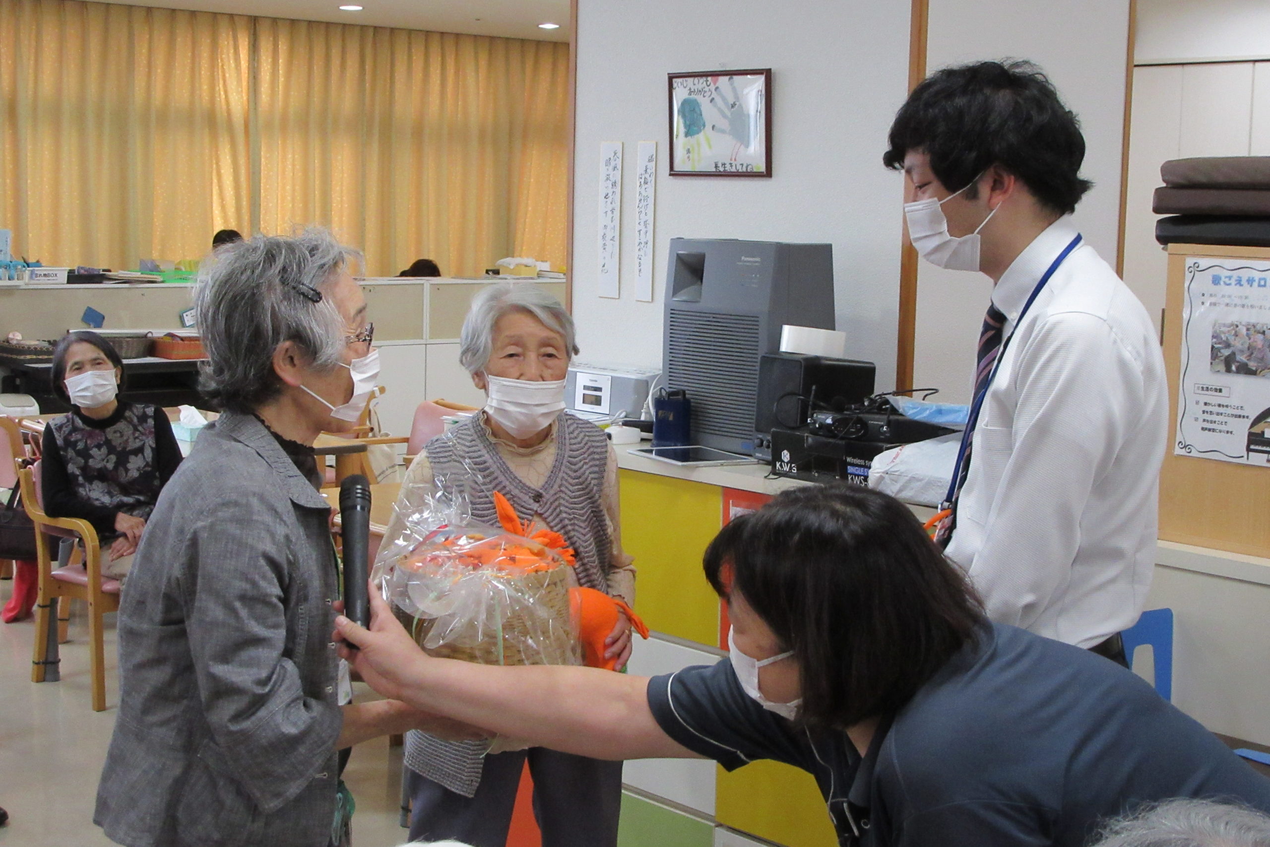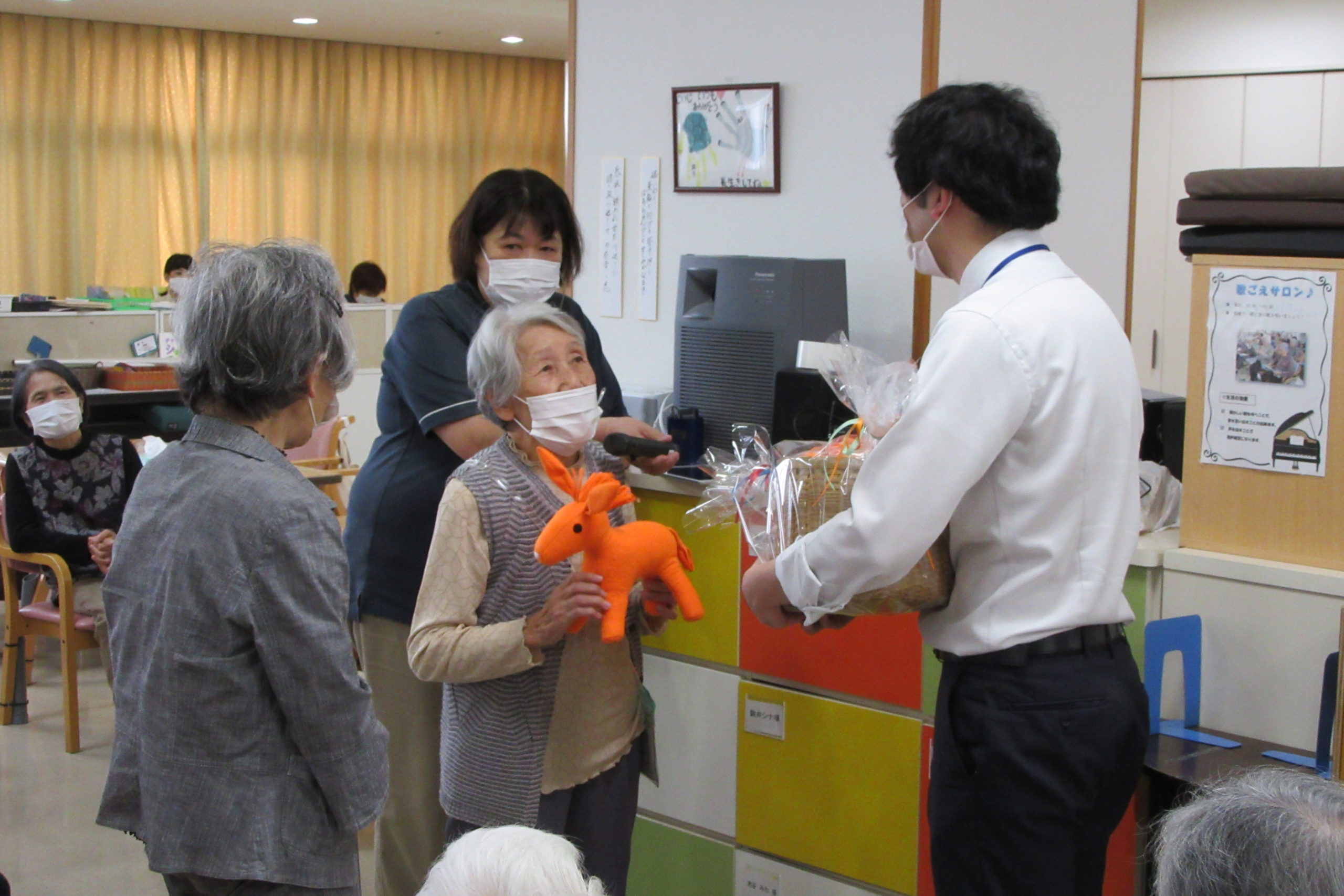 裁縫が得意なお二人が代表で「一生懸命作りました」「お役に立てて下さい」とお渡ししました。