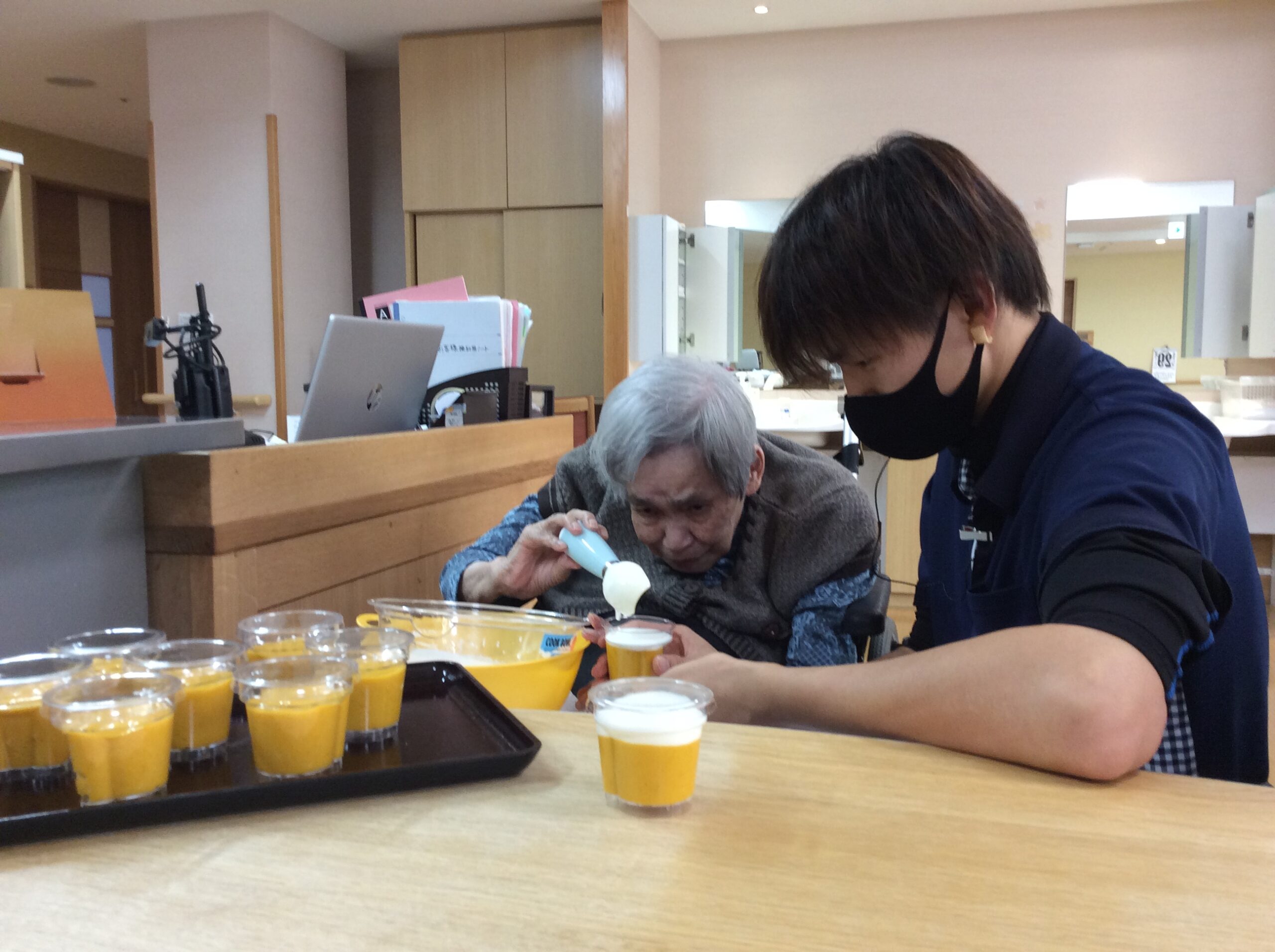 作った2種類のスイーツはお客様の食事形態に合わせて提供をいたしました。
