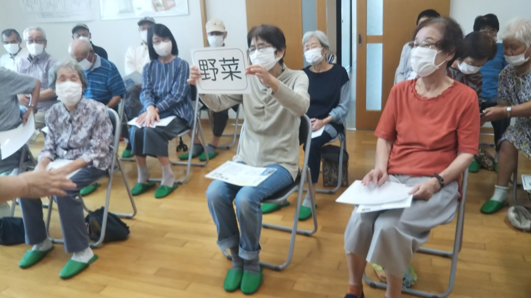 お題のカードを引いてもらい、そのお題から連想できる言葉を3つ発表する頭を使った体操。