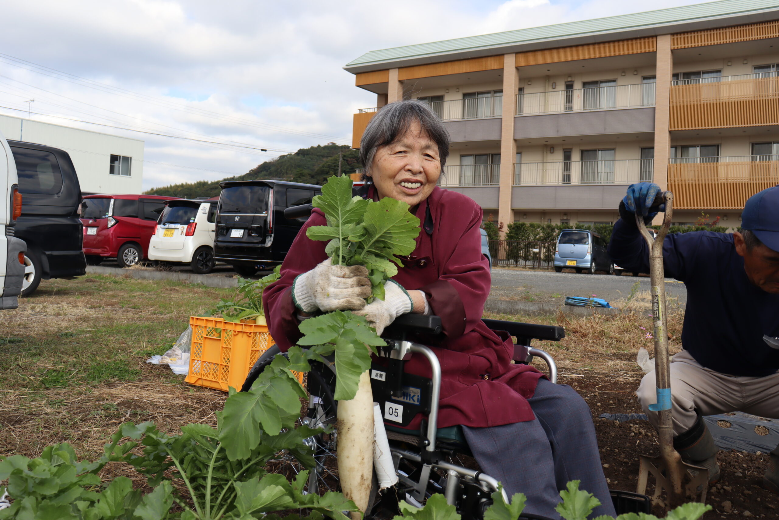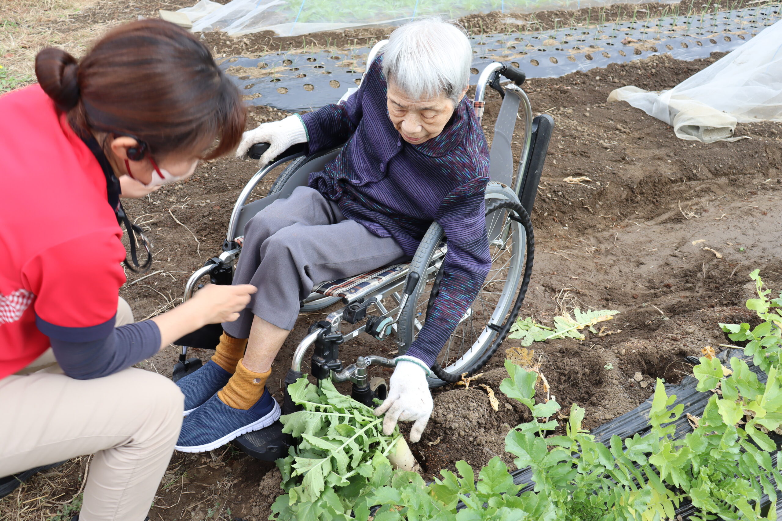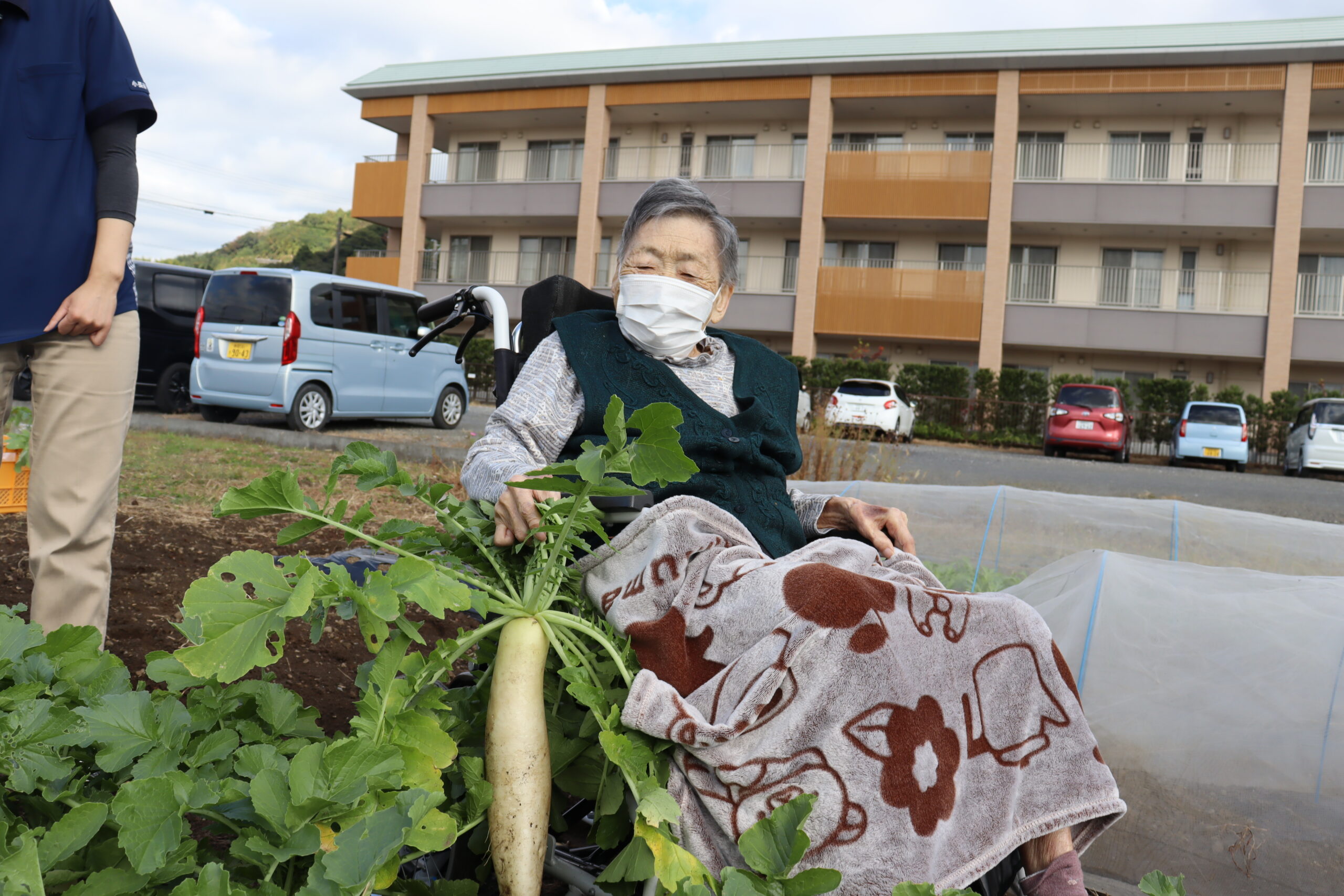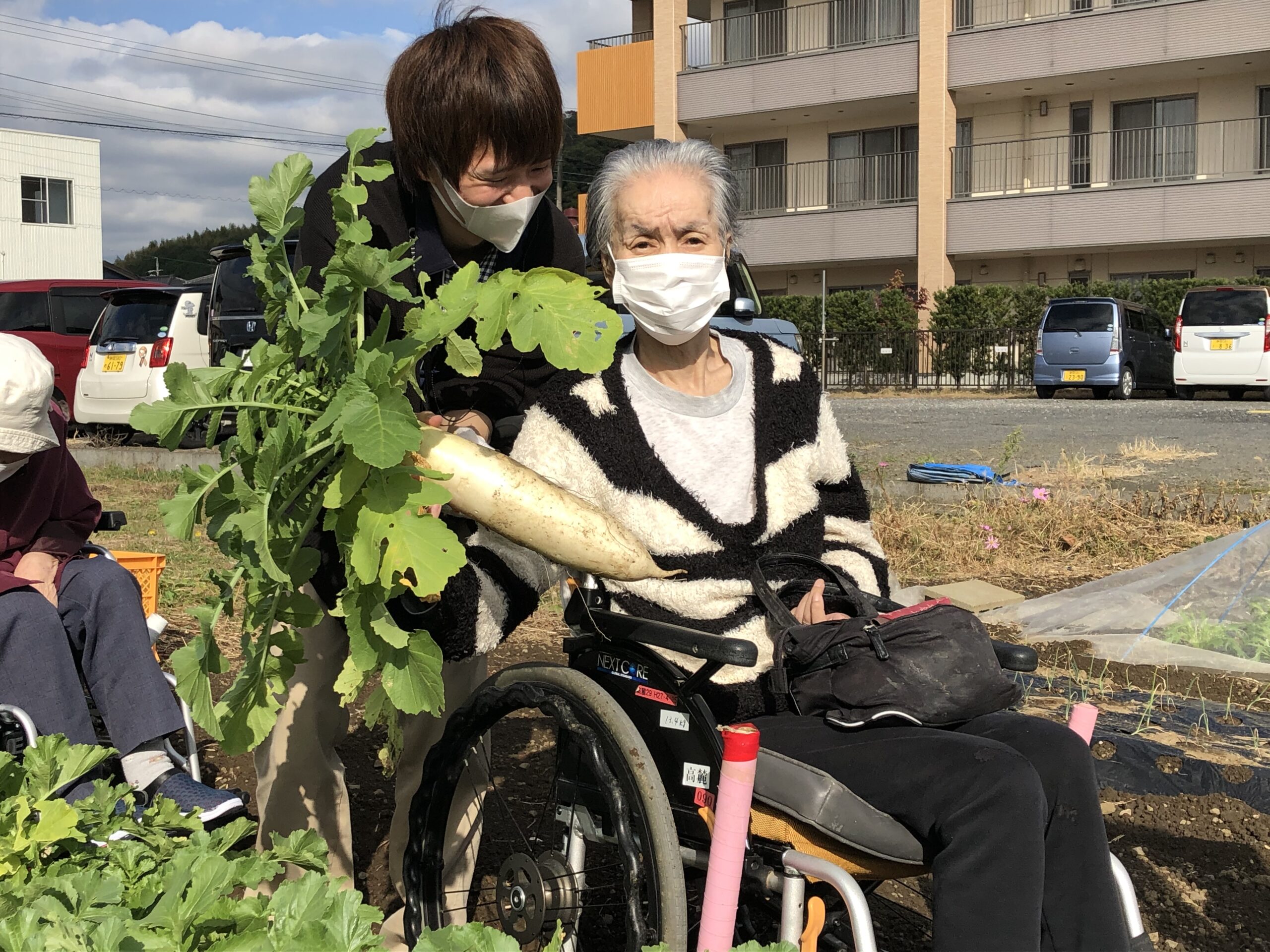 収穫作業が難しい方も大根の匂いを嗅いで、