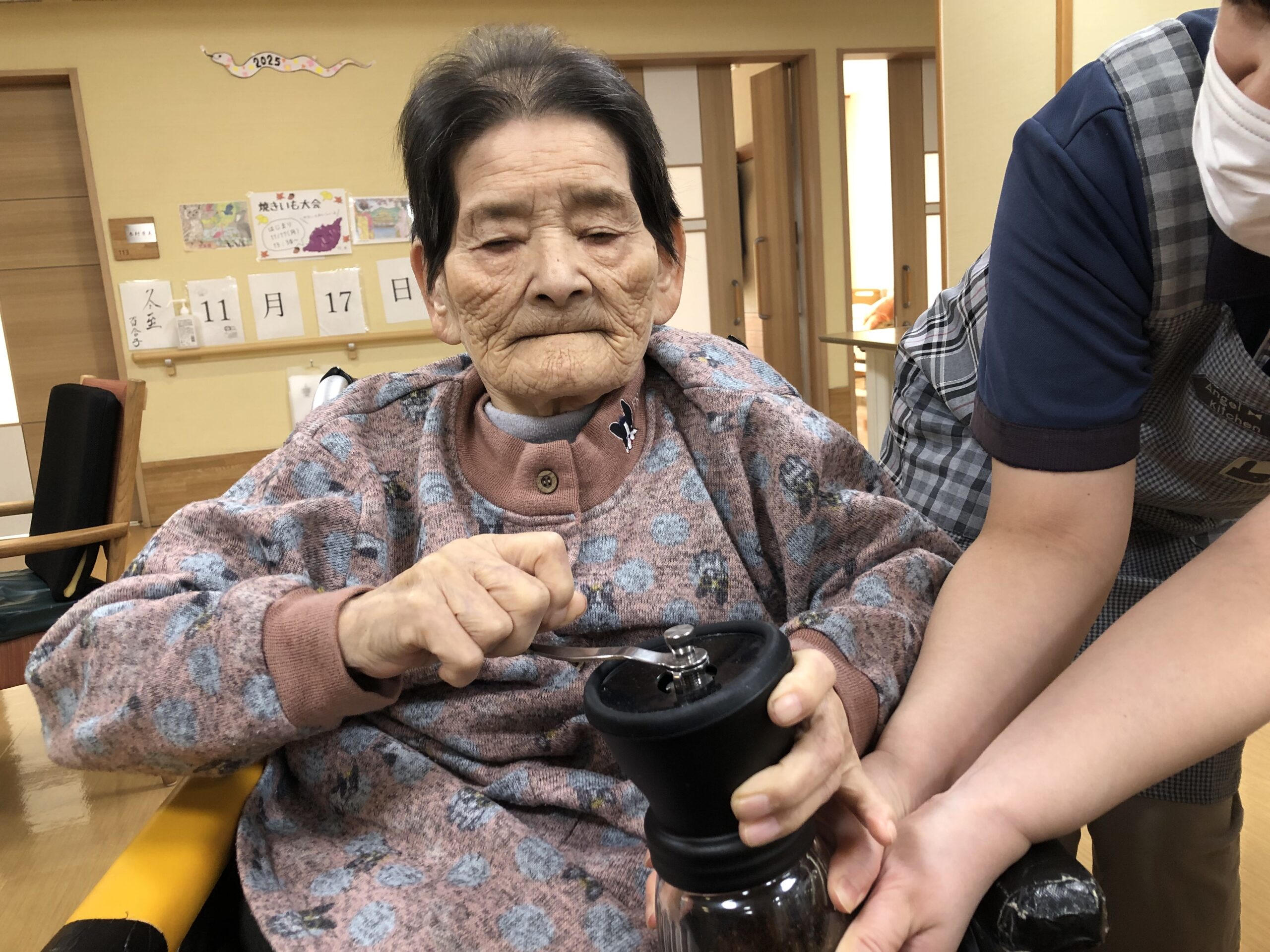 指先や指の運動になり、少し疲れながらも、豆が挽かれてくると香りが広がり、「コーヒーのいい匂いだね」という声が多かったです。