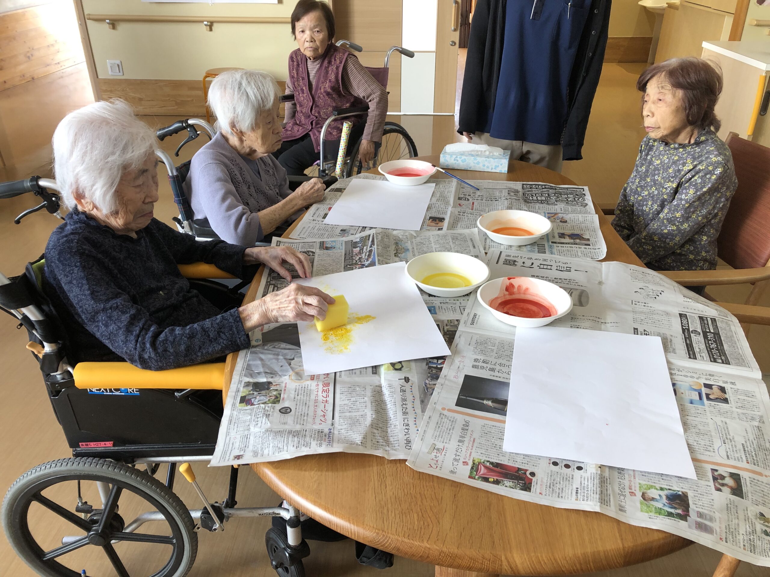 また、スポンジで塗る作業は指先の運動にもなりました。