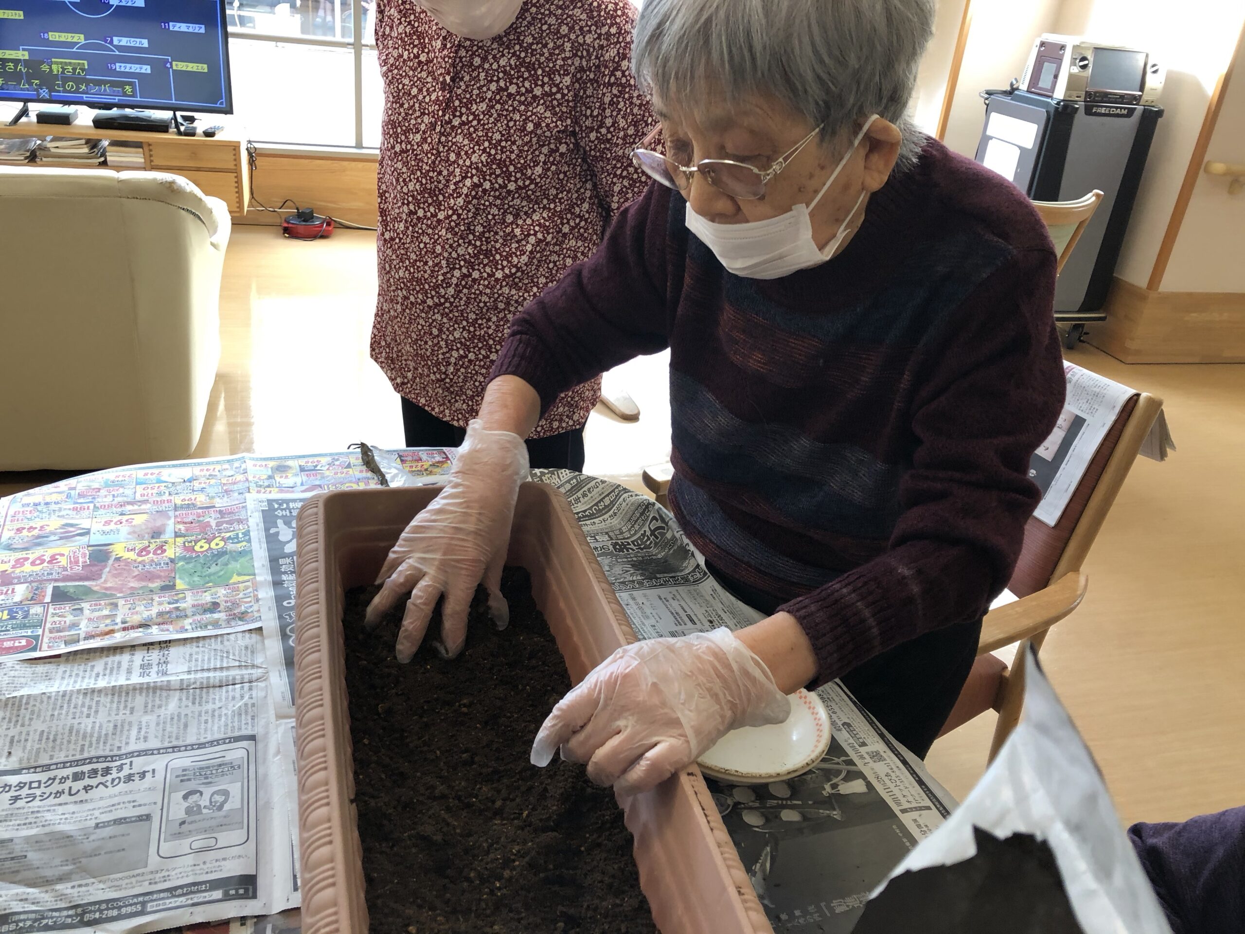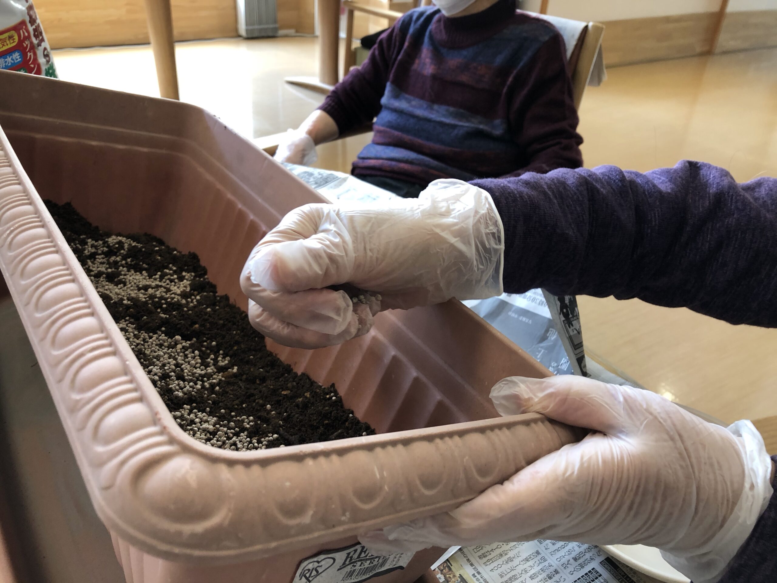 お客様にショートステイを利用されているときの過ごし方を有意義にしたいと思い、季節の園芸をしようと企画を考えていました。