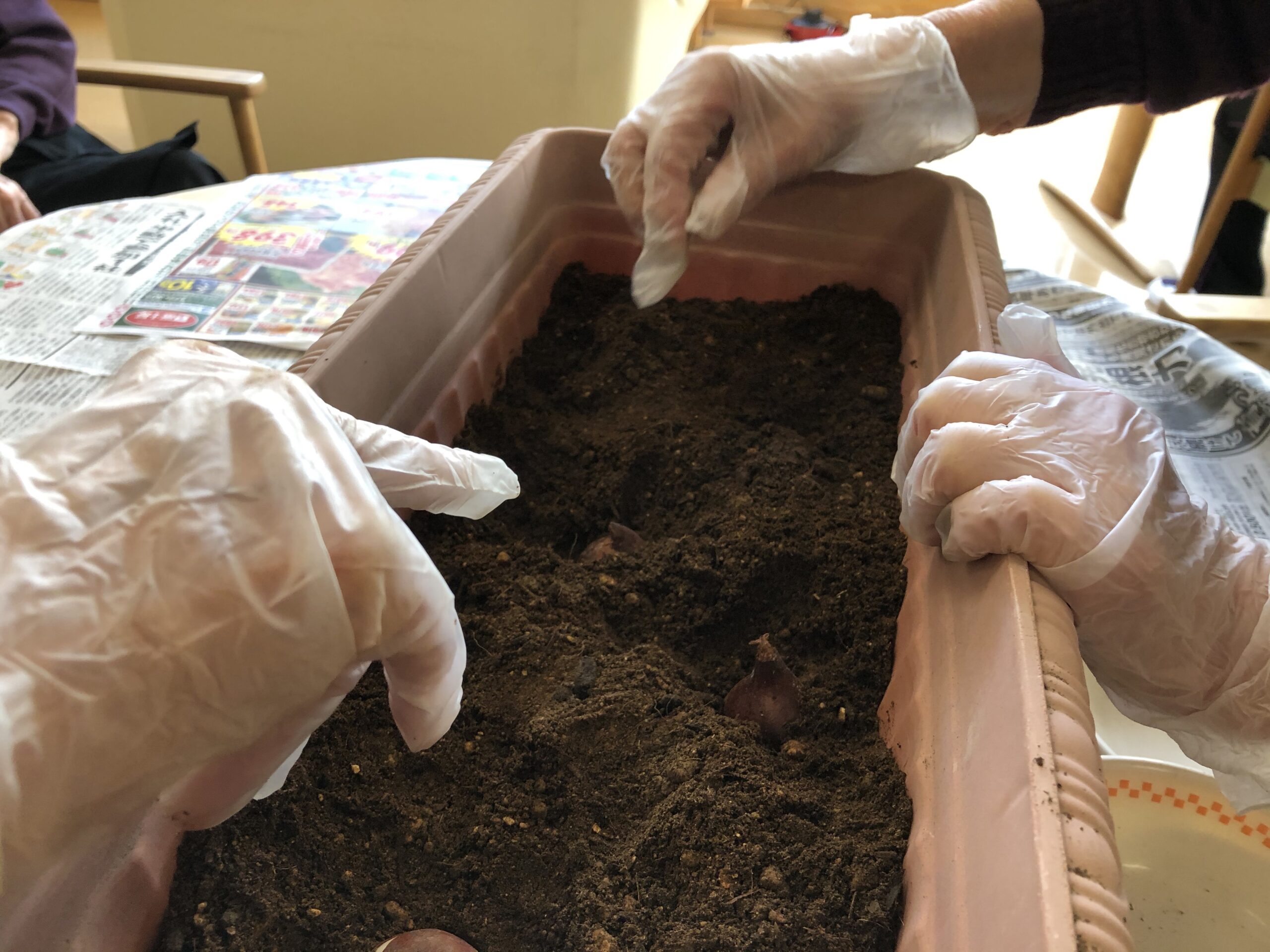 11/27 ユニットショートステイ いただいた球根を植えました!