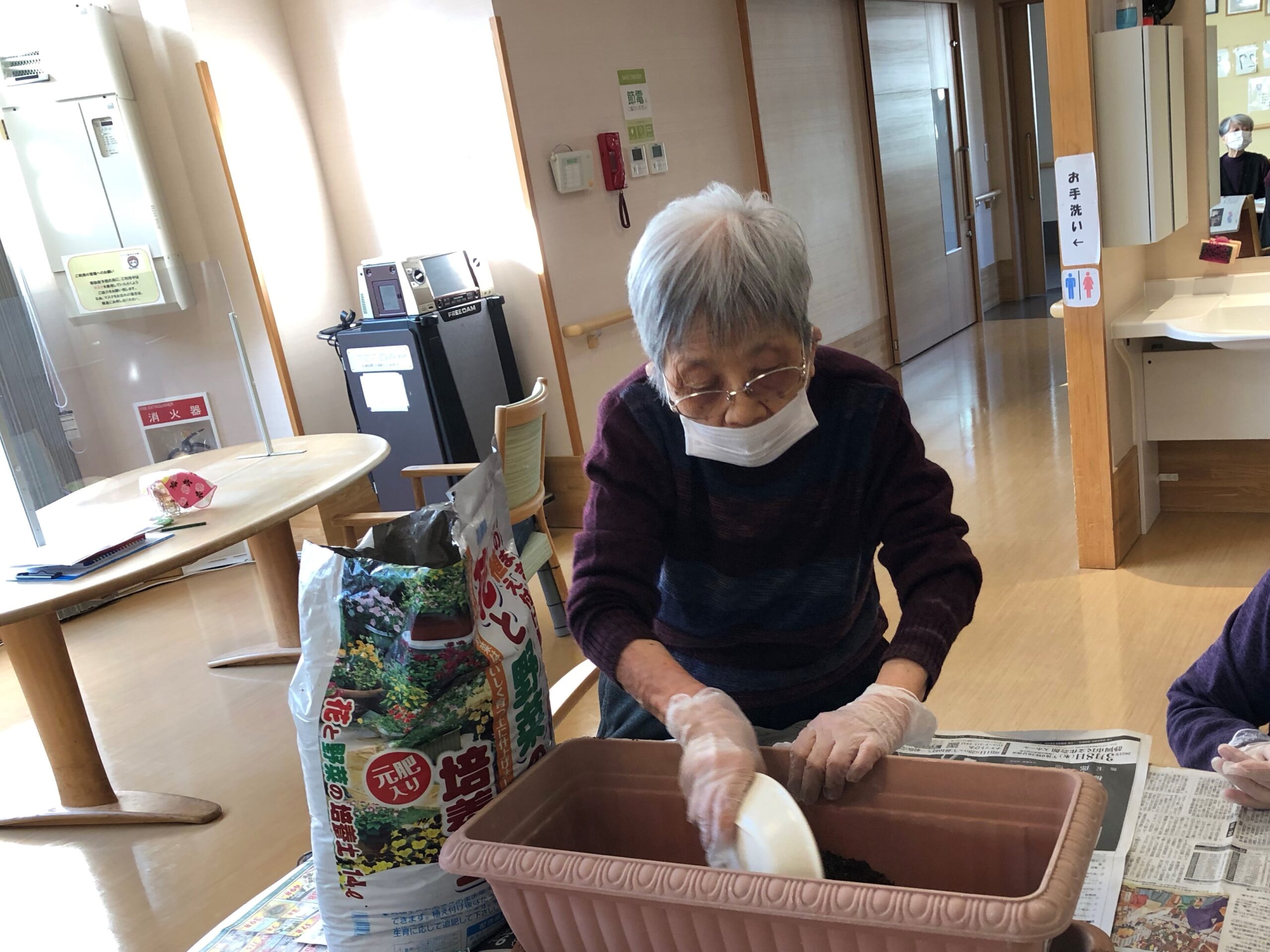 お客様にショートステイを利用されているときの過ごし方を有意義にしたいと思い、季節の園芸をしようと企画を考えていました。