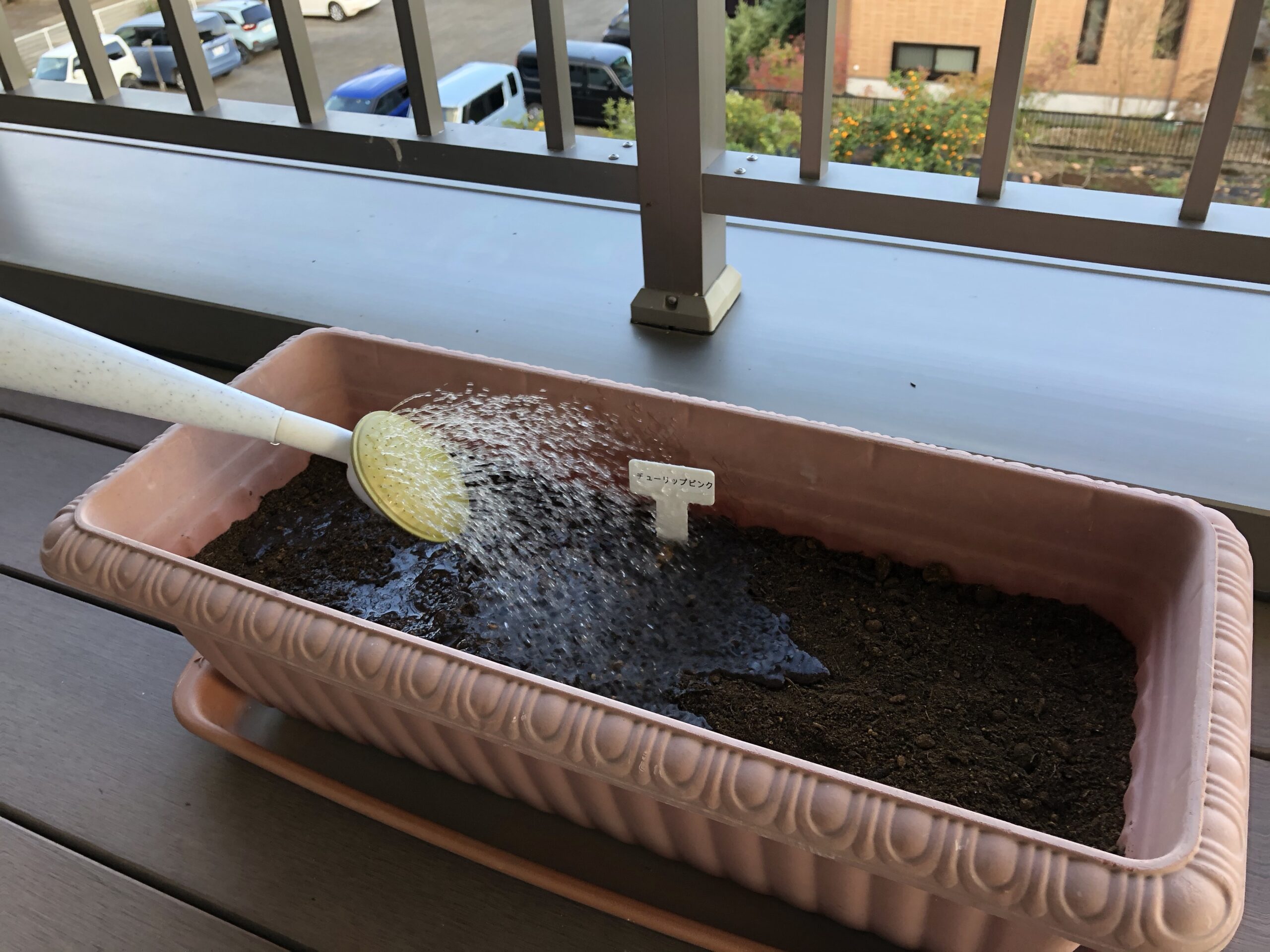 「球根何個あるの??じゃあこう、こう、こうやってズラして植えよう」