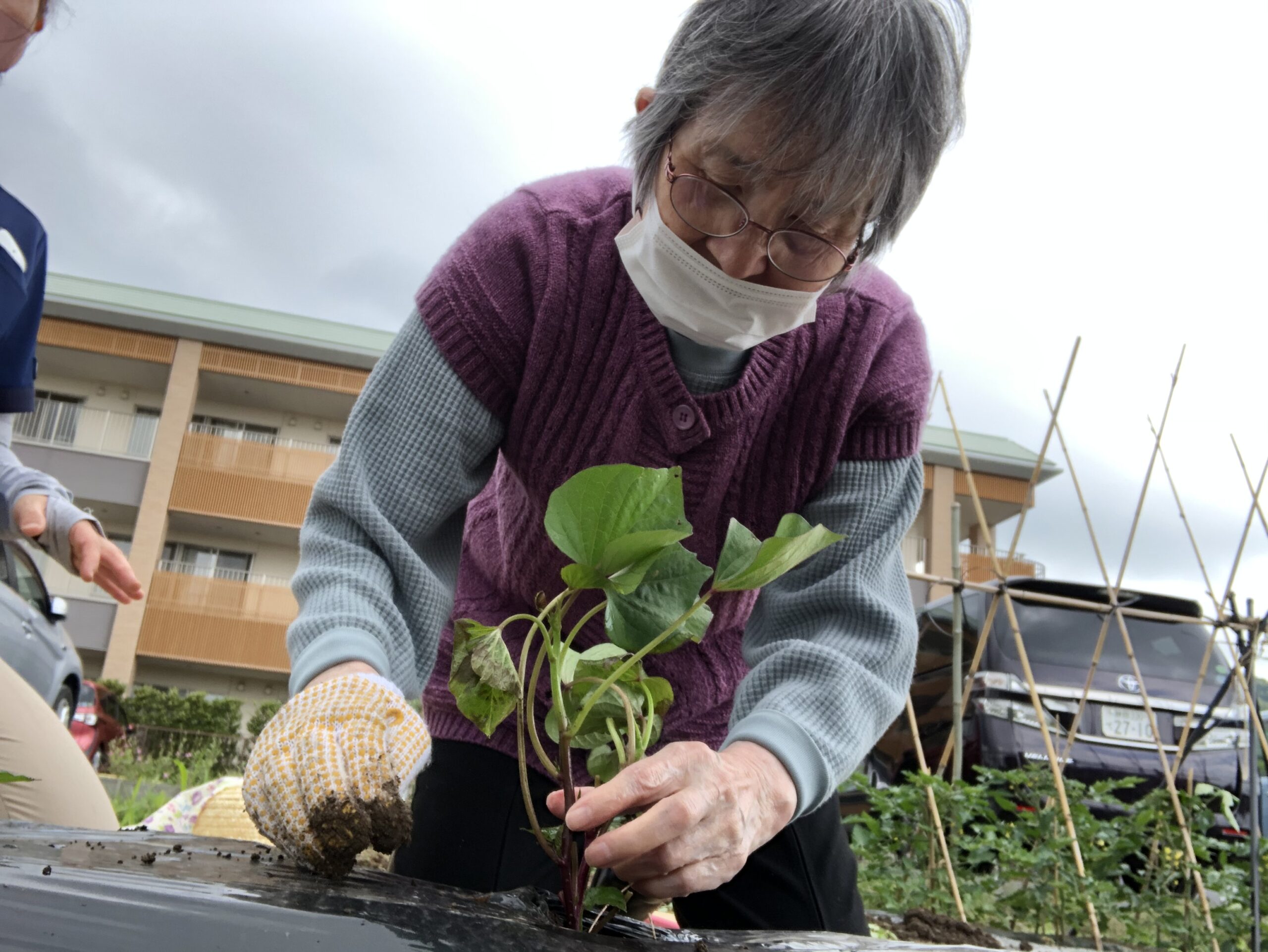 入居前の生活で、畑仕事に馴染みが深い方多く、畑に行くと皆様笑顔で生き生きした姿が見られたのが、