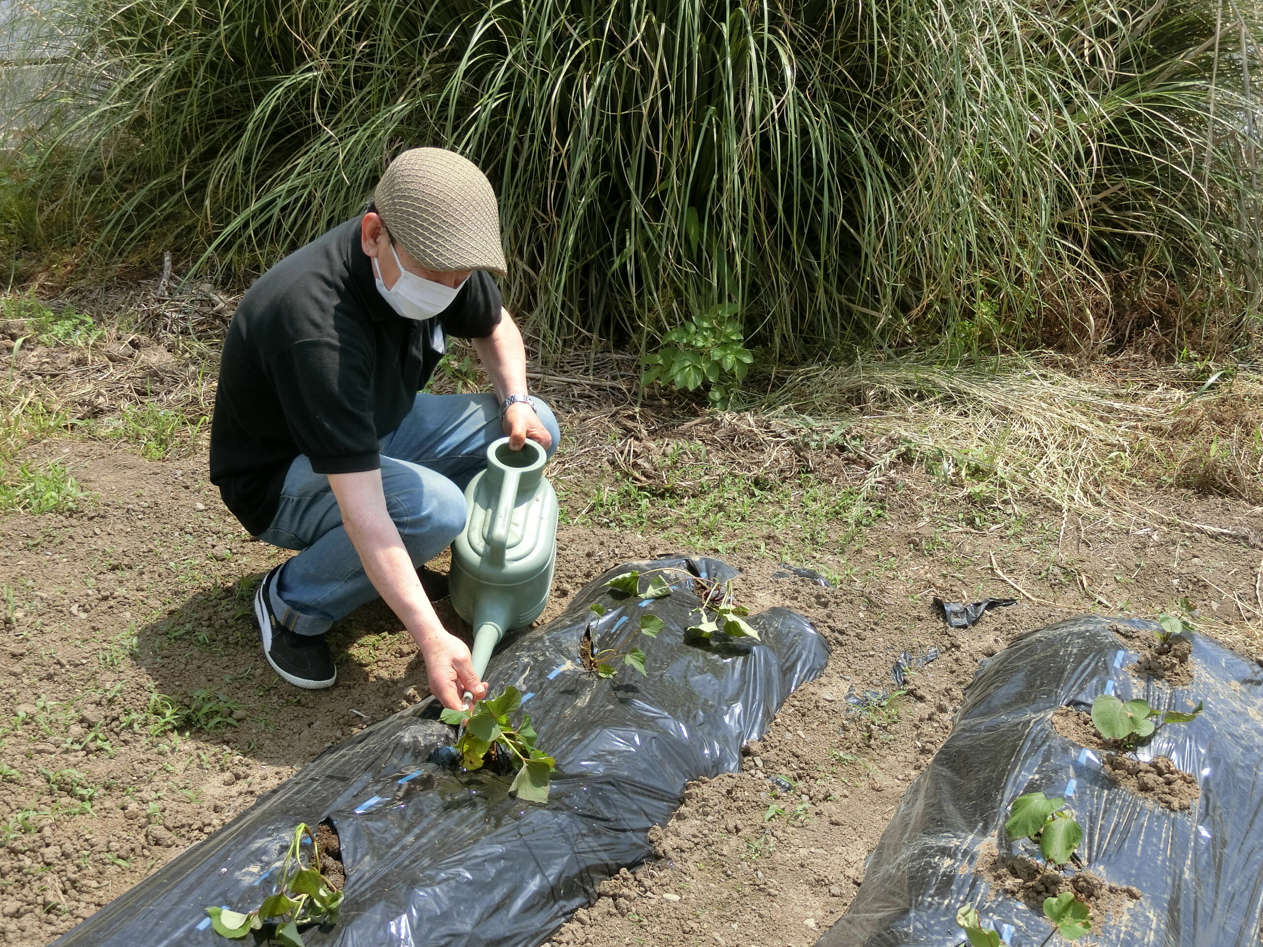 「大きくなってよ」「美味しいお芋に育つんだよ」等祈りを込めました。
