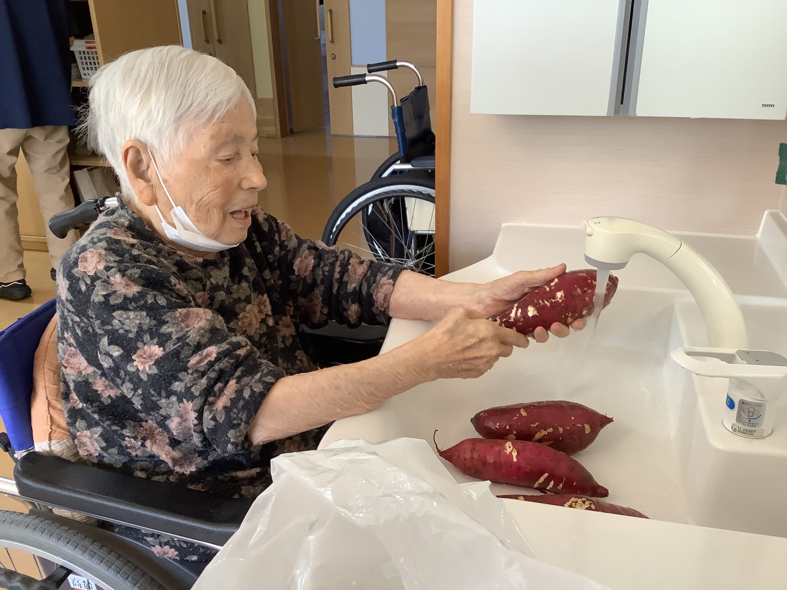 待ちに待った焼き芋大会の午前中は、職員もお客様も準備に大忙し。