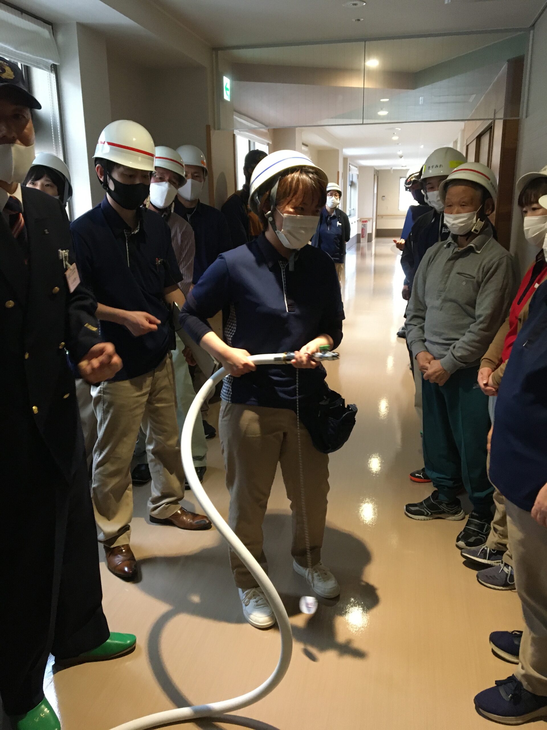 しかし万が一、電化製品のショートなどにより火災が発生することを想定して、年2回火災訓練を毎年行っています。
