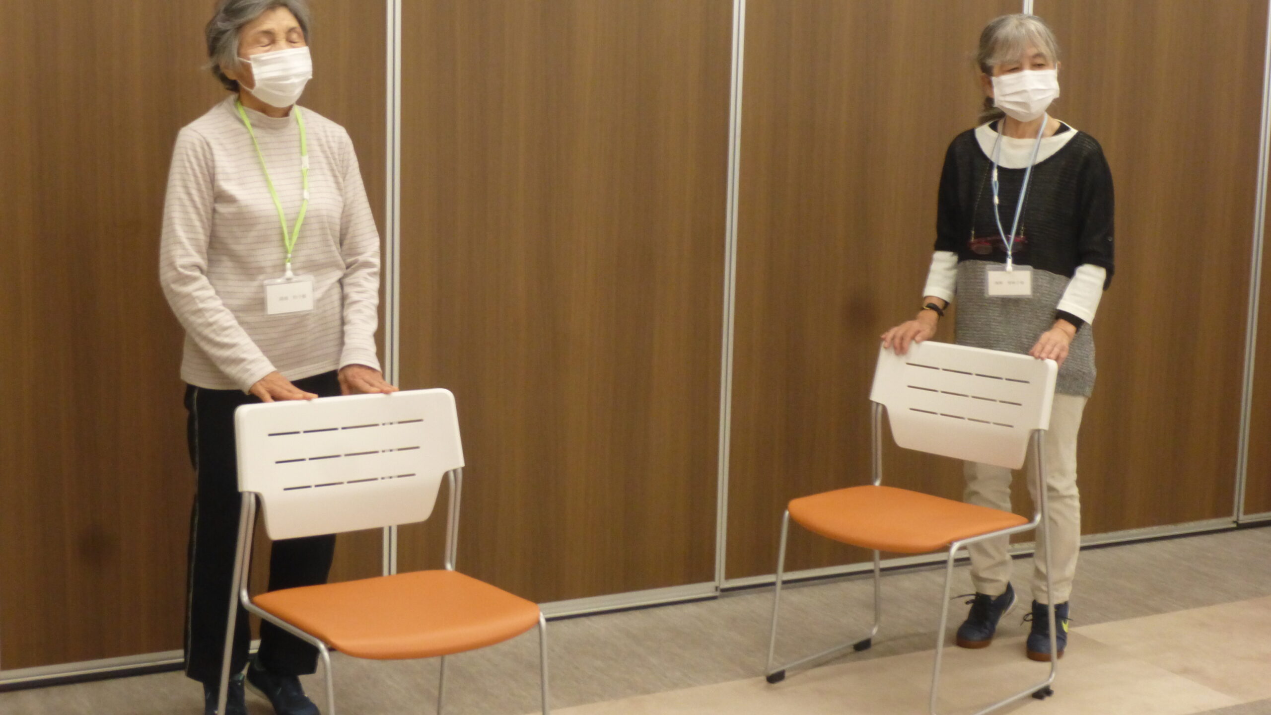 椅子を使ったりなど、入念に体を動かす準備をしていきます。