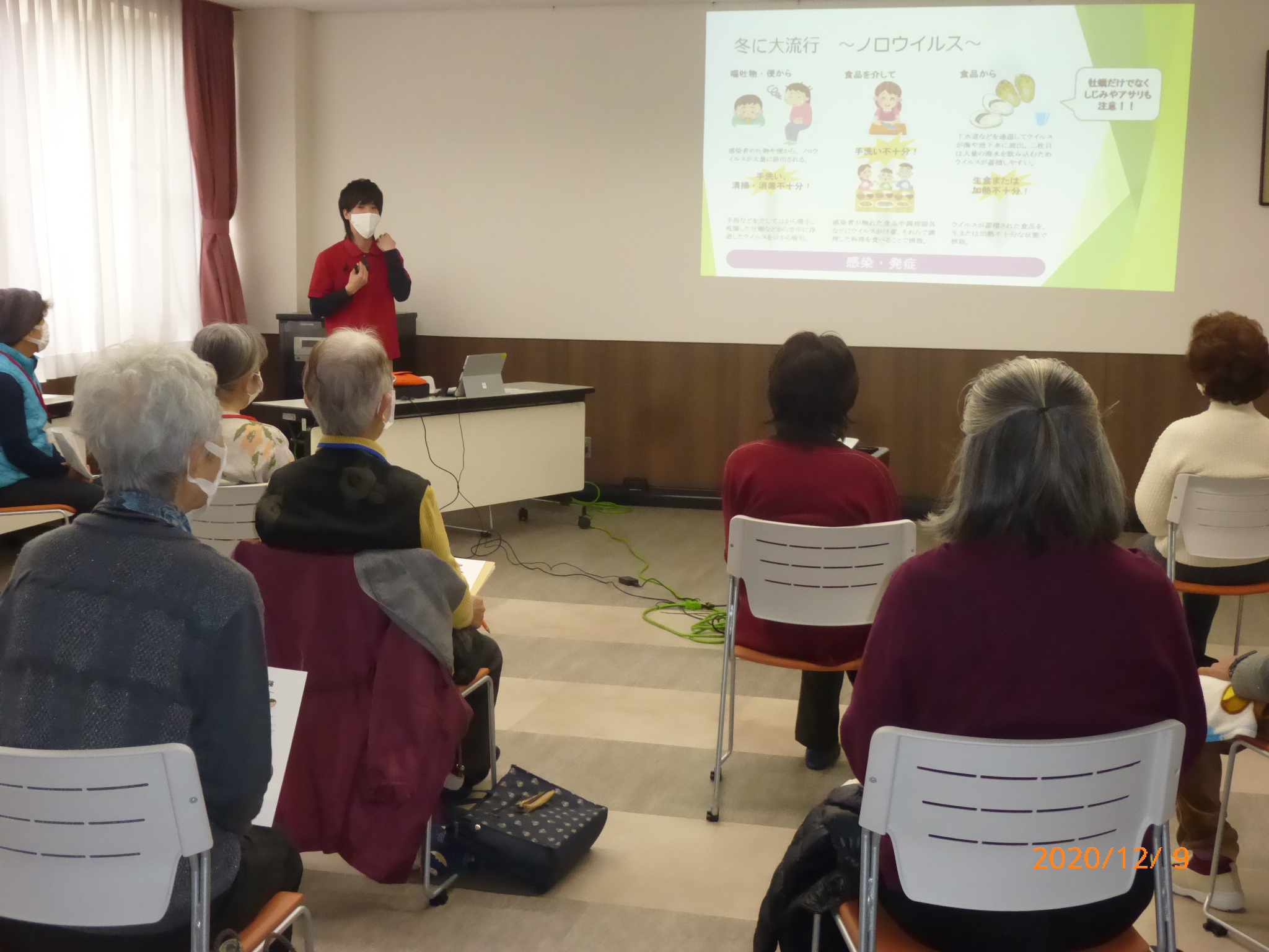 12月のいきいきサークルは高麓管理栄養士による「冬でも怖い食中毒」のお話と衛生的な手洗いの実演、