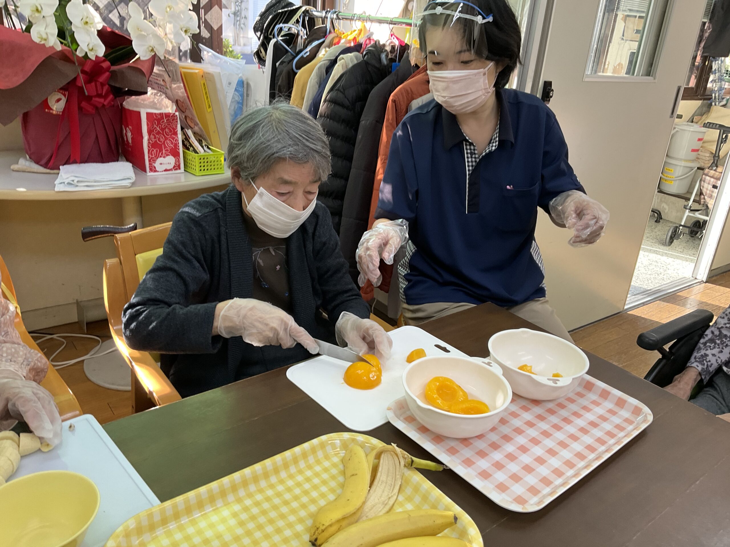 お客様にも実際に生地作りやフルーツの盛付をしていただきました。