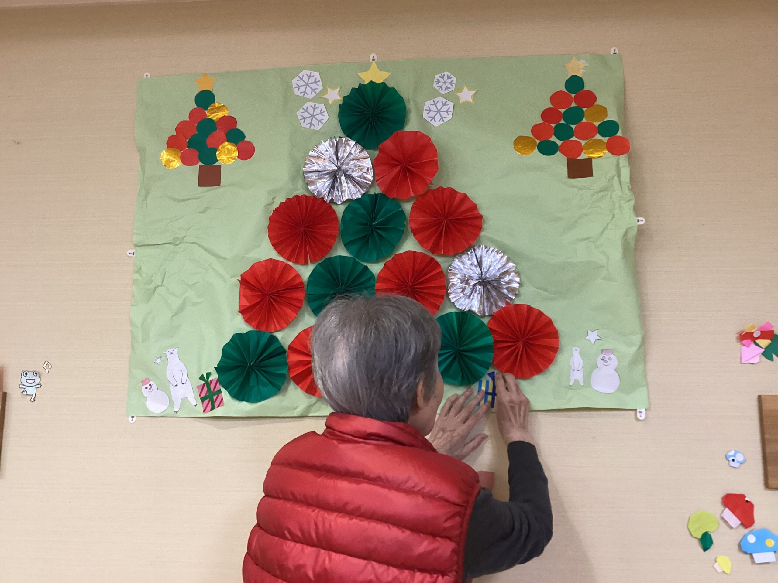 フロアにクリスマスソングをかけようかなと思うほど、素敵な作品ができ、フロアの中も12月の寒さが暖まるような雰囲気になりました。