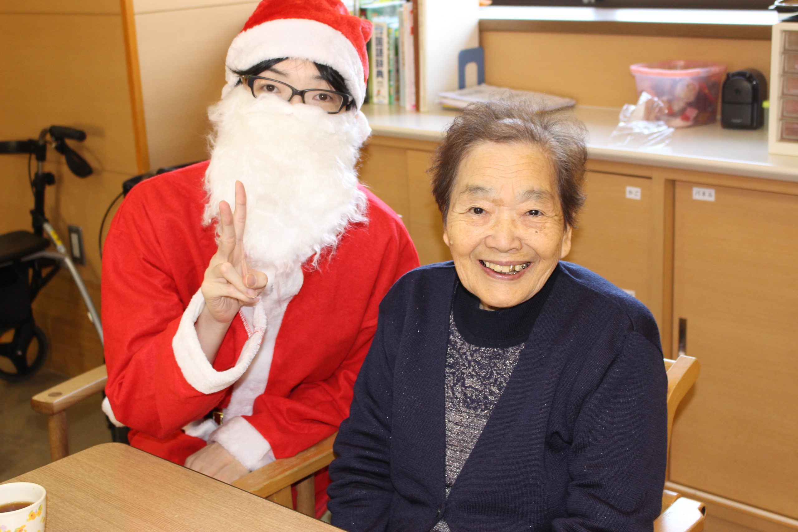 お客様とパシャリ!お客様もサンタの登場で笑顔でした。