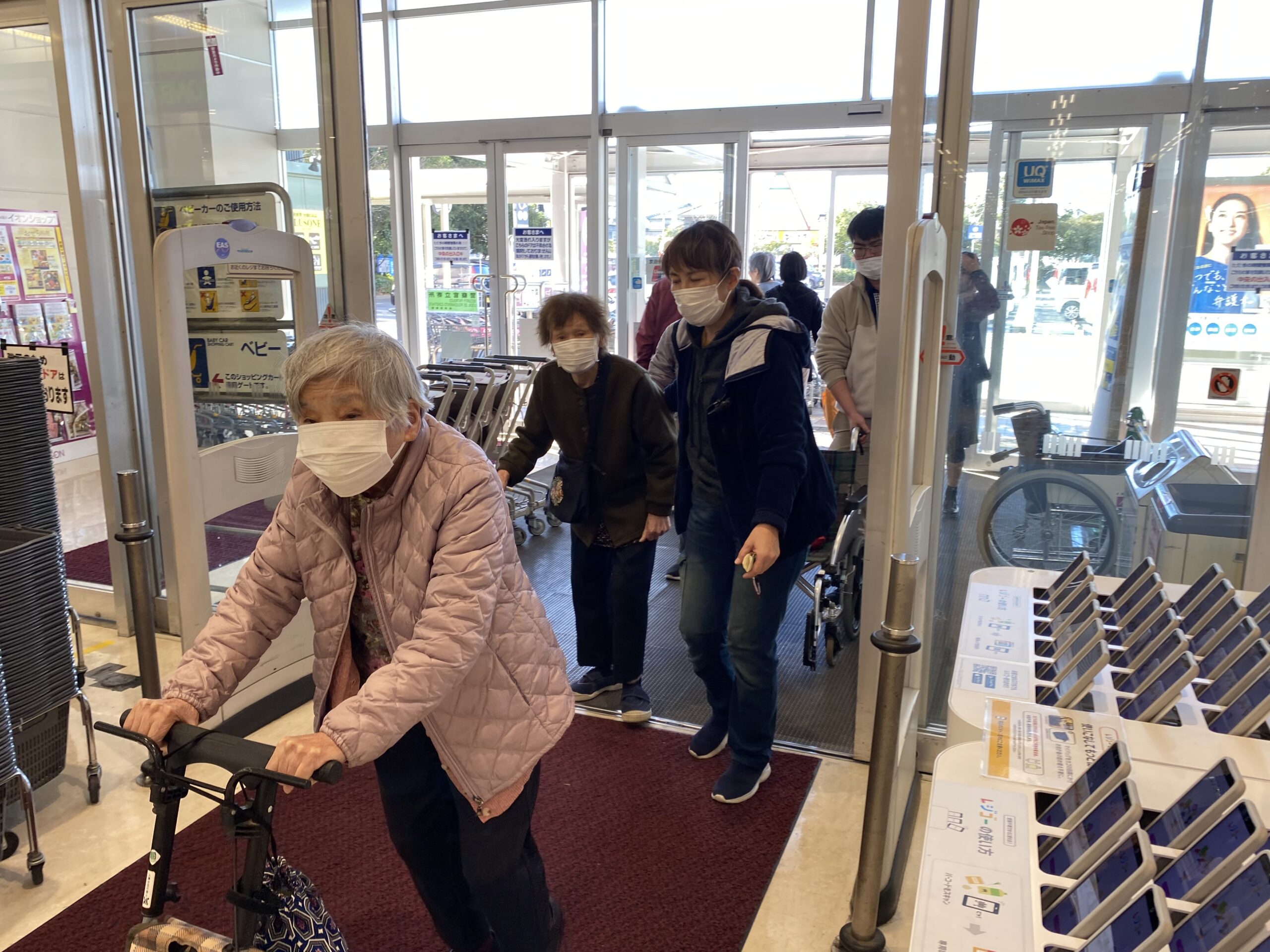 カートを押しながら買いたいものを探して歩きまわり、日頃の歩行訓練やリハビリ体操の成果が発揮できたのではないでしょうか。
