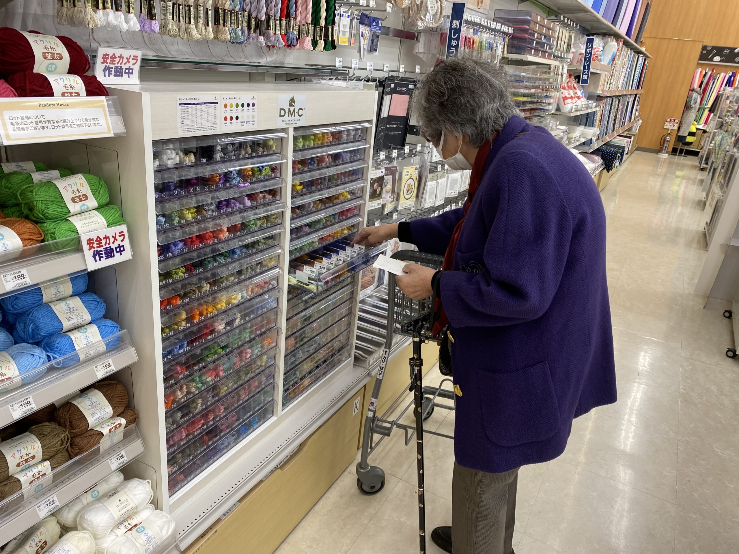 A様、B様は行きたいお店に一目散に向かい、手芸店にて刺繡糸や刺繍枠を購入。