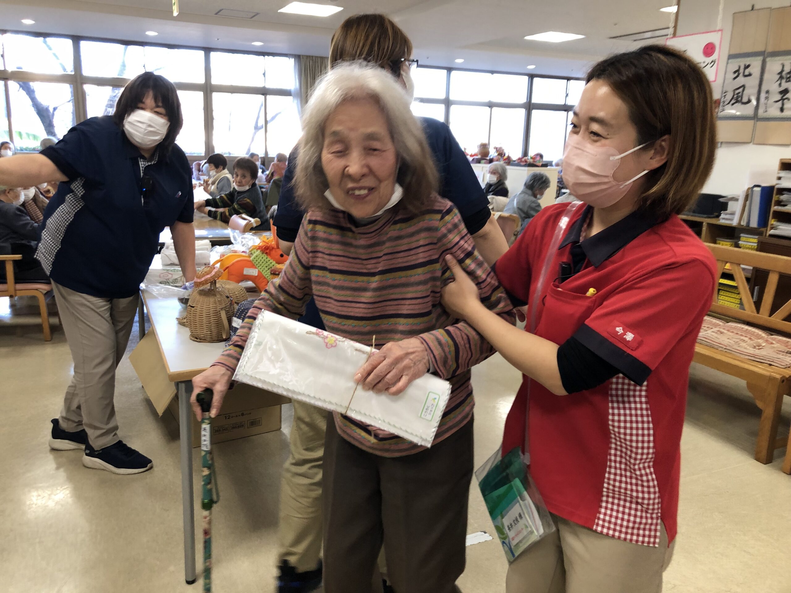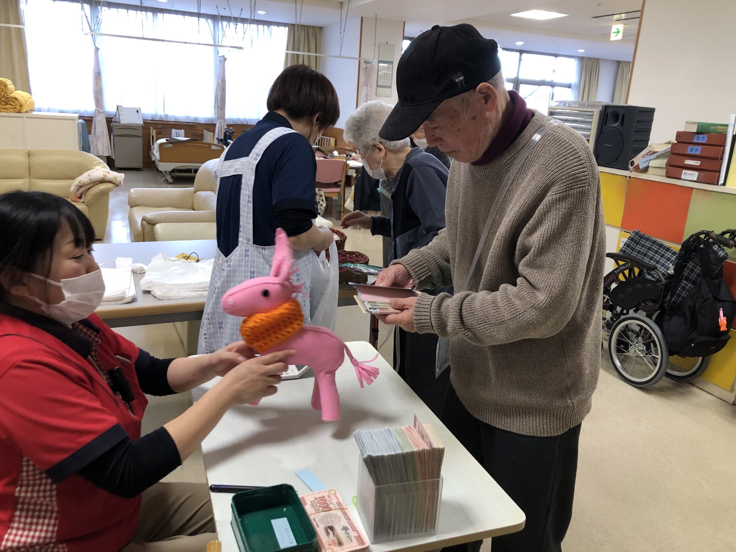 自席から会場まで来て、自分で商品を見て・選び、会計をして席に戻るという一連の動作が、買い物をするという楽しみや良い機能訓練にもなったのではないでしょうか。