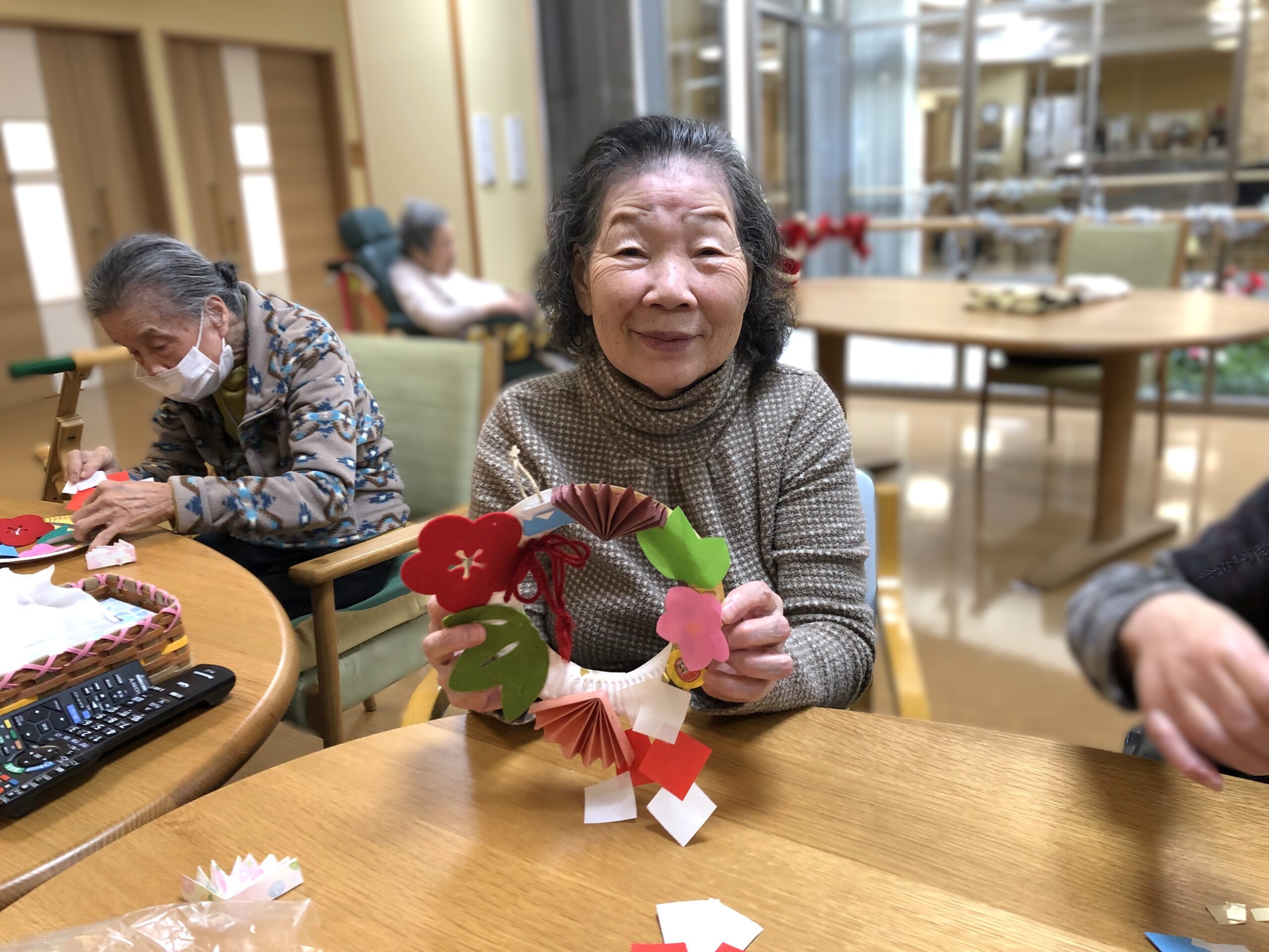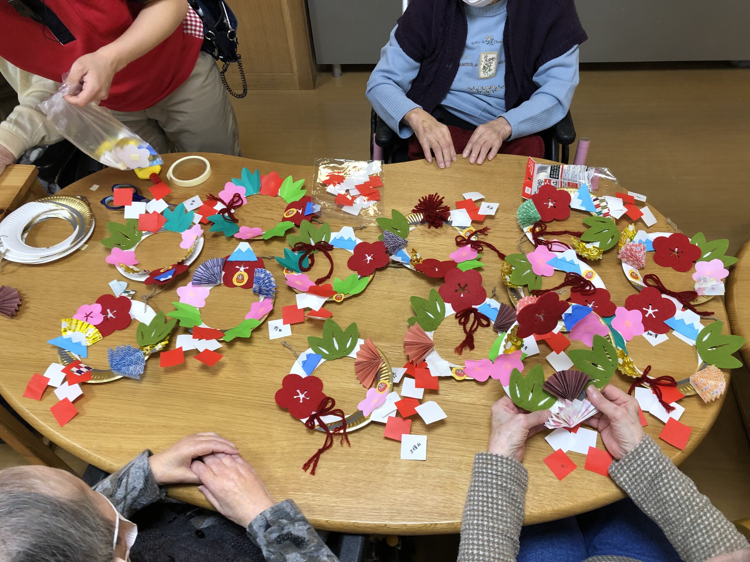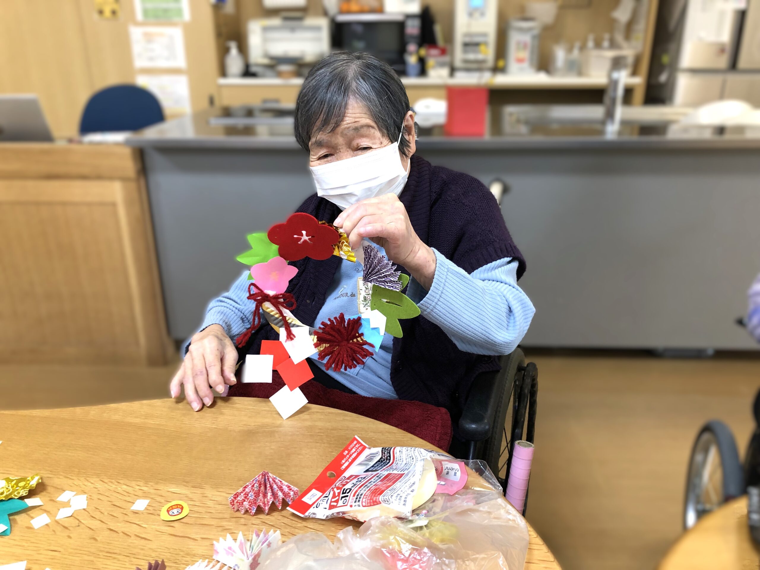 ユニット1階では、お正月を楽しく迎えられるよう、お客様と一緒にお正月飾りを作りました。