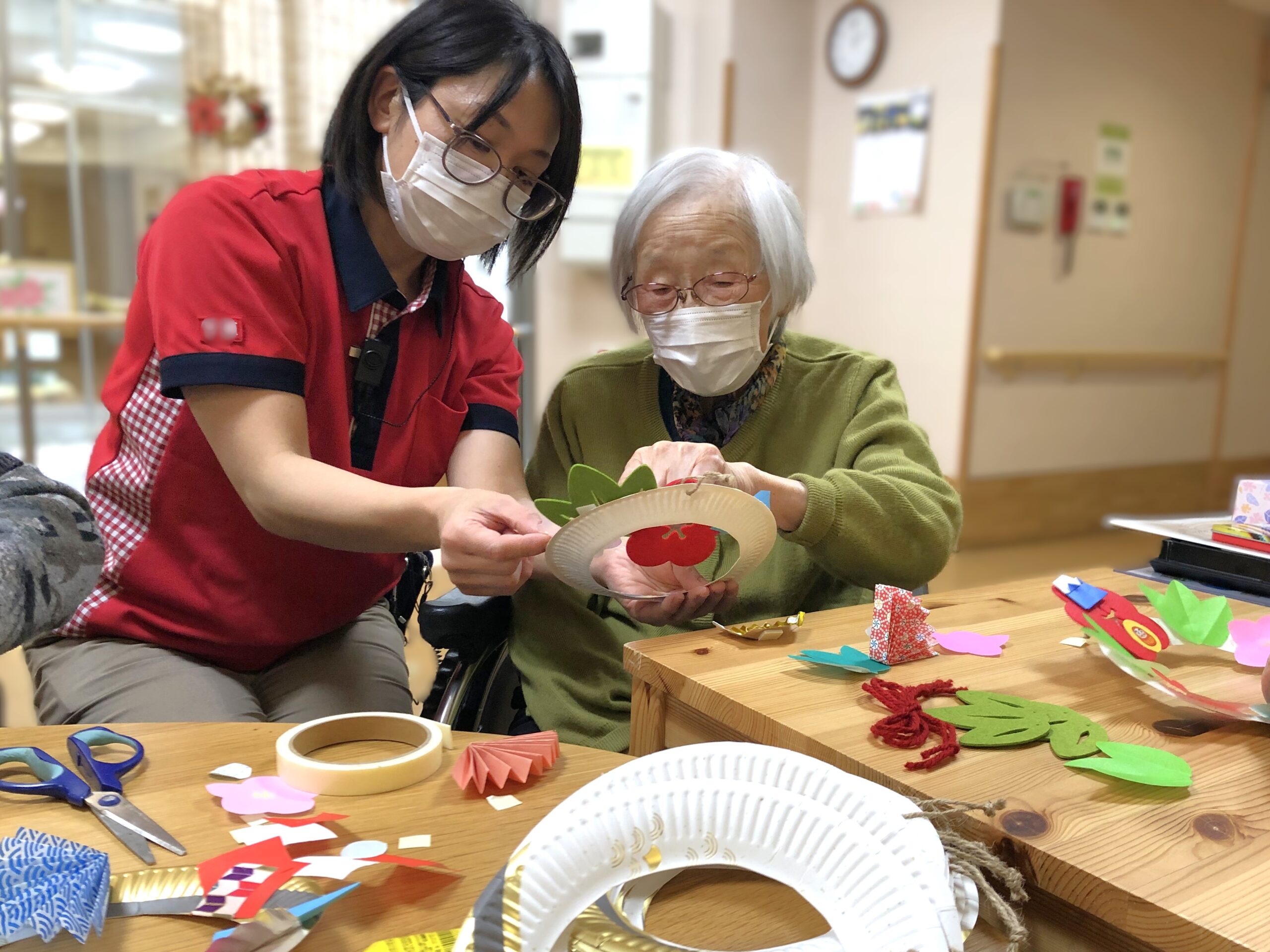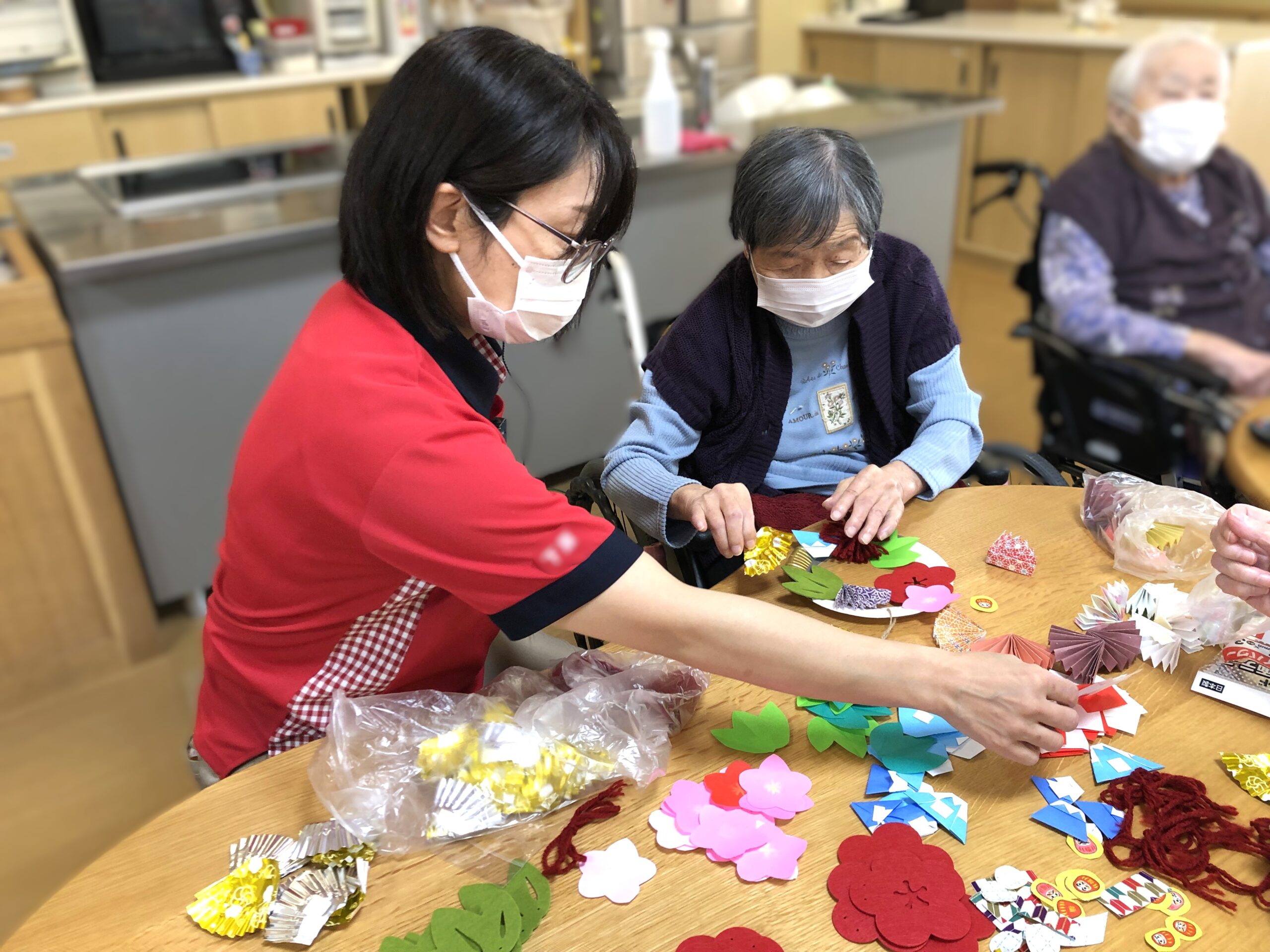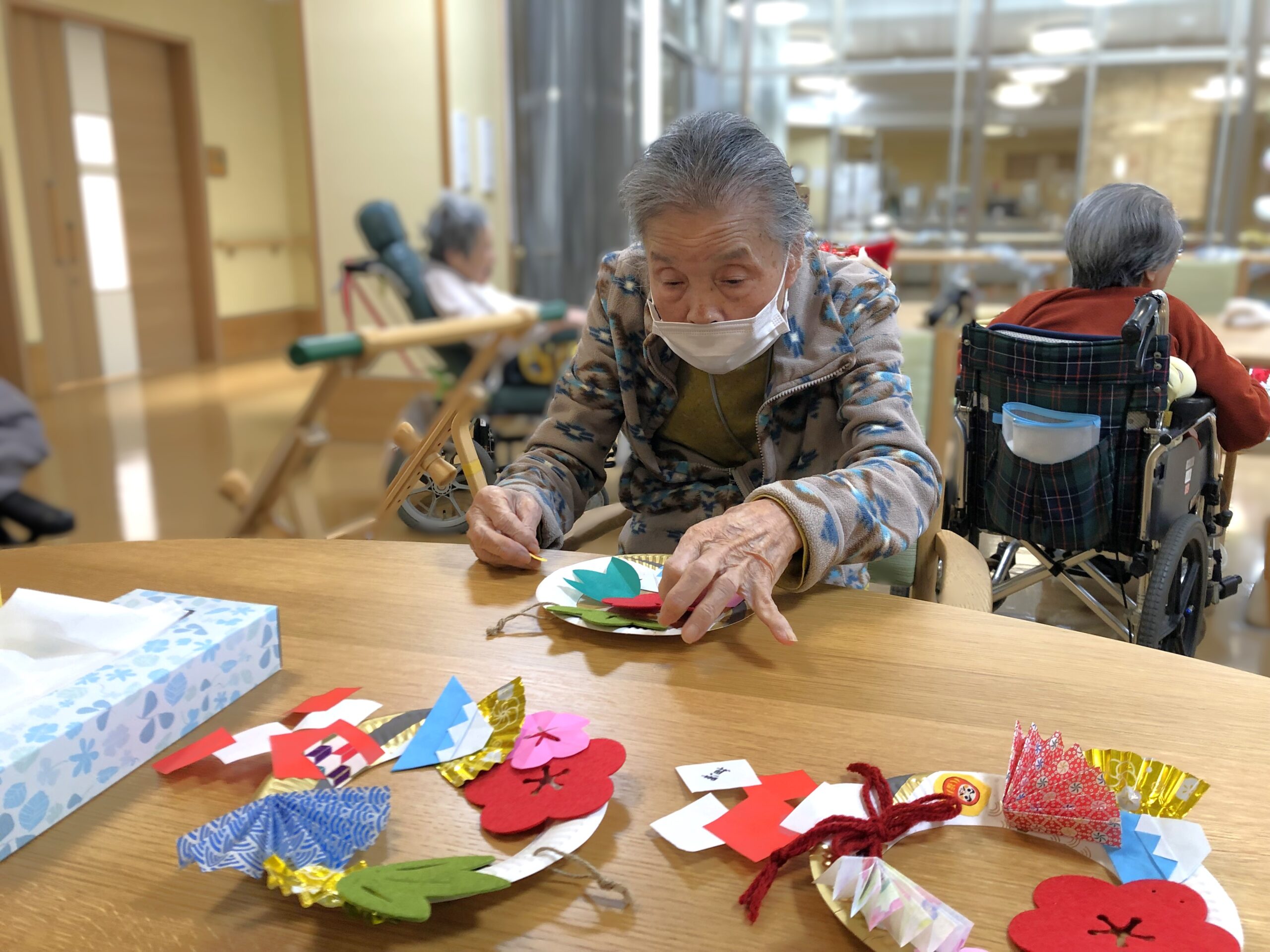 ユニット1階では、お正月を楽しく迎えられるよう、お客様と一緒にお正月飾りを作りました。