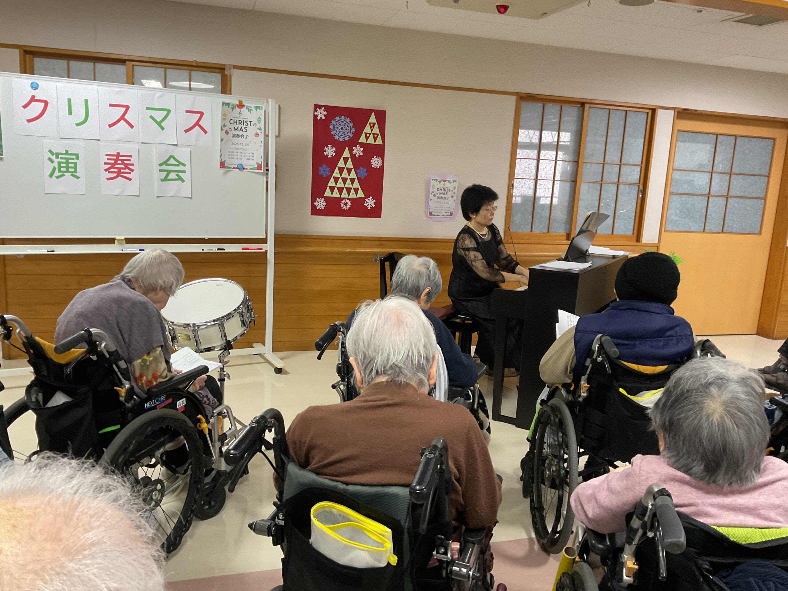 クリスマスの季節を感じていただくため、ボランティアの方が施設のピアノを使って演奏をしていただきました。