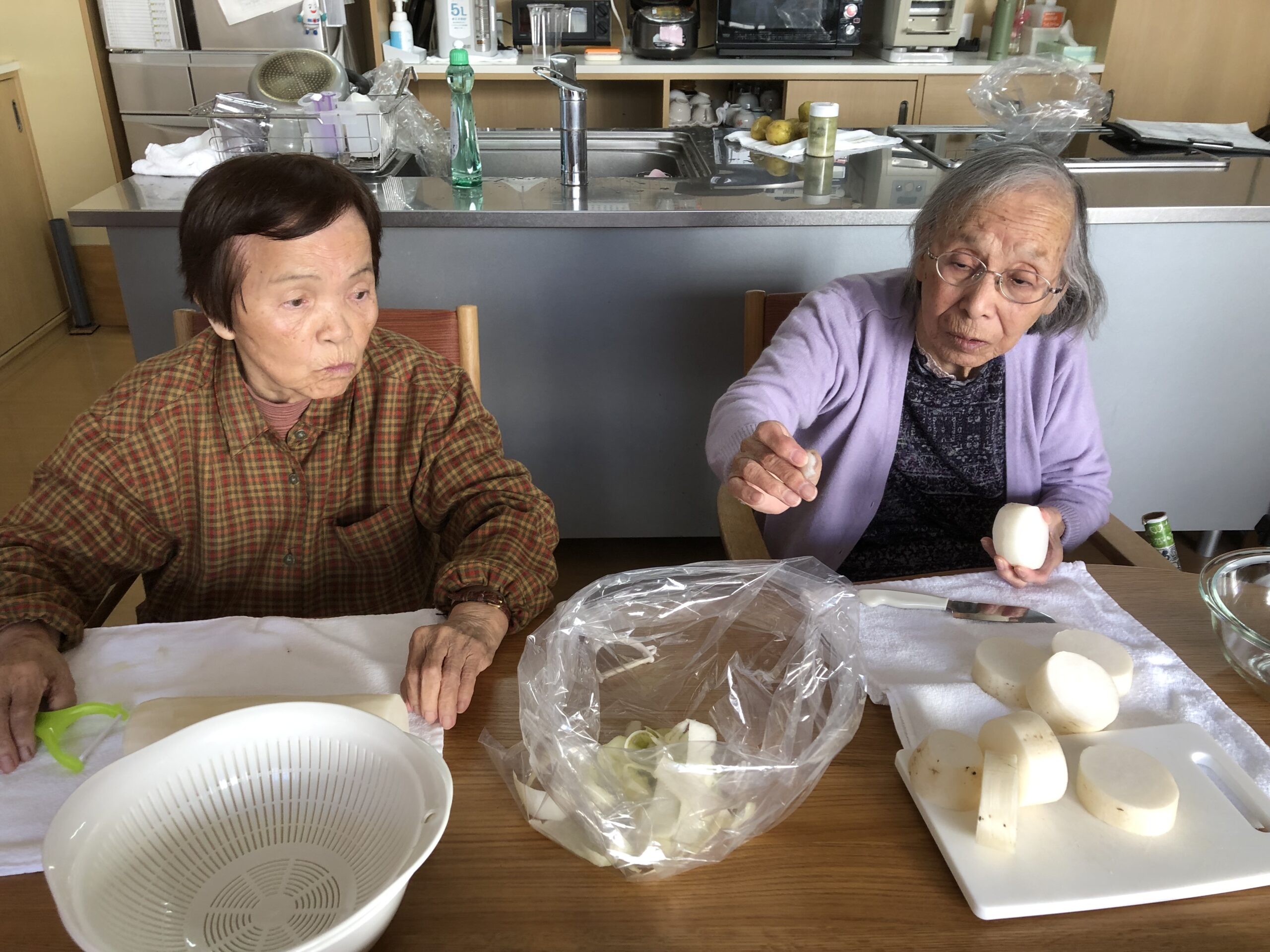 前日に、里芋と大根、ジャガイモの皮剥きをお客様と一緒に行い